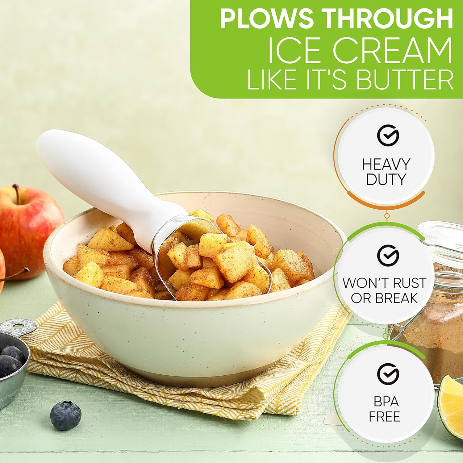 Spring Chef White Commercial Ice Cream Scoop with Comfortable Handle - Heavy Duty Metal Ice Cream Scooper for Frozen Yogurt, Gelato, Sorbet, Melon, Sundae - Dishwasher Safe Kitchen Tool