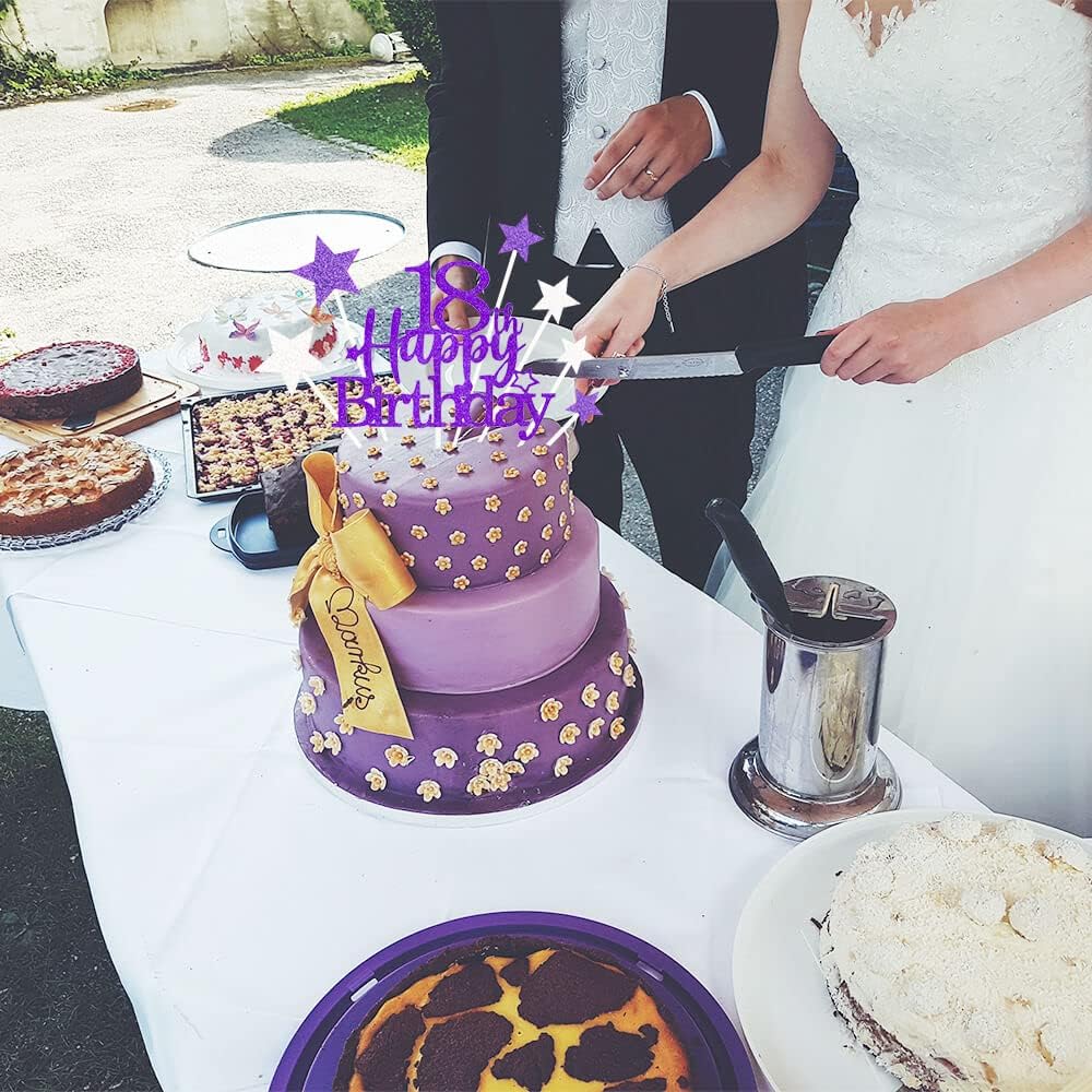 Glittery 18th Happy Birthday Cake Topper with Star,Personalised 18 Birthday Cake Toppers Party Decorations Party Supplies for Boys Girls Purple Silver
