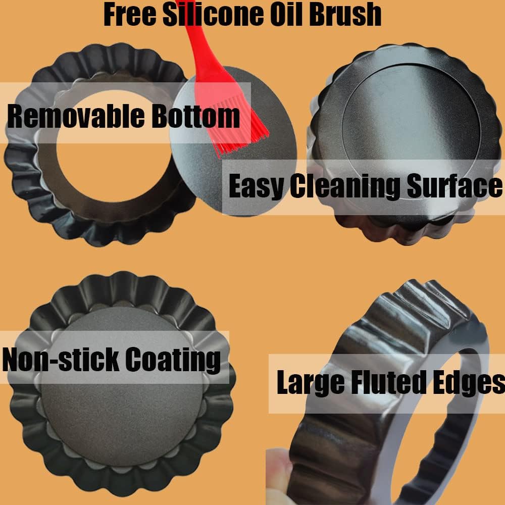 - 【WIDELY APPLICATION】The 4 inch tart pan with removable bottom not only popular in our everyday life, but also suitable for restaurants, bakeries, buffets, gifts of formal occasions, like Wedding, Christmas, Mother’s day, Valentine's Day, Halloween, Birthday Party, Housewarming Celebration and etc.