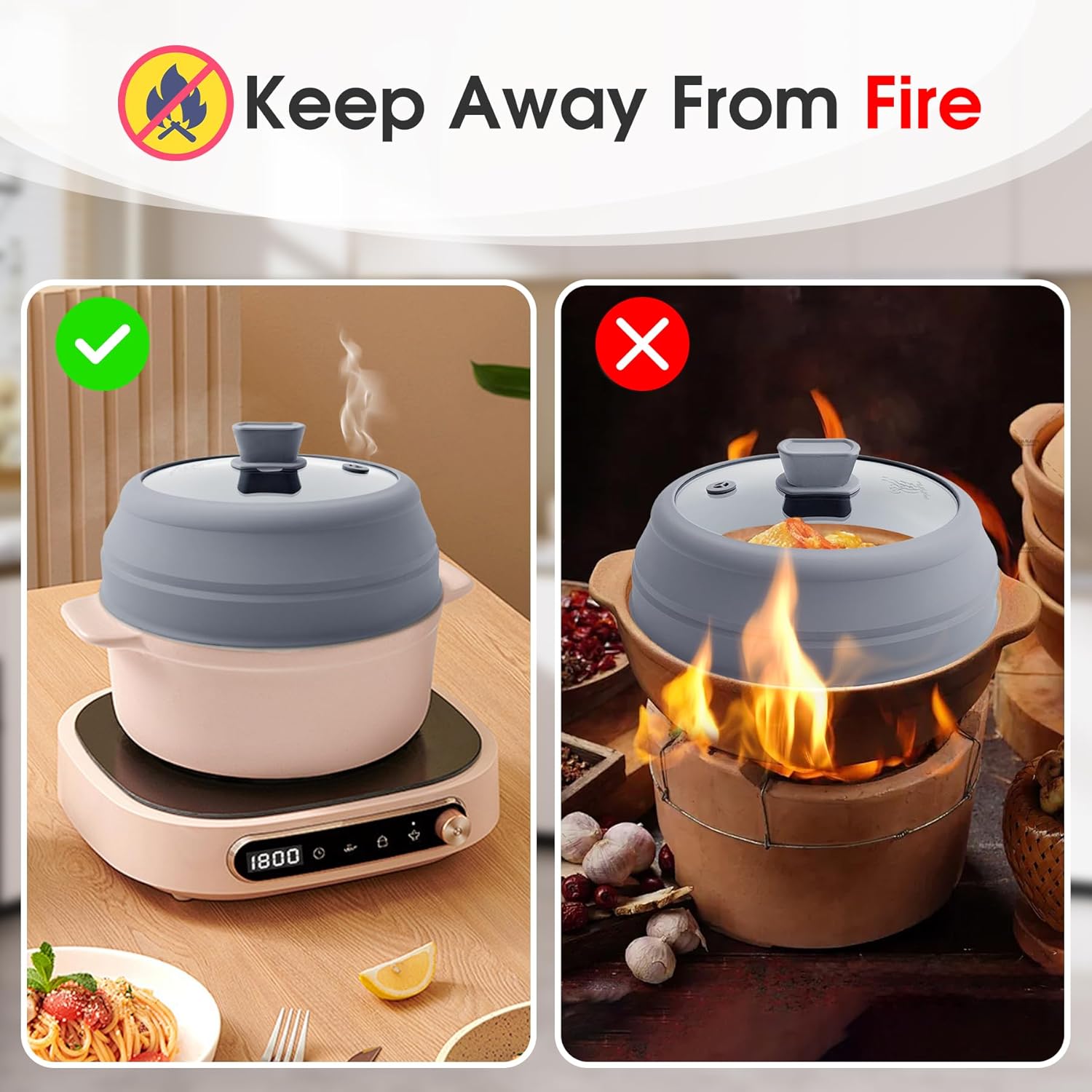 - Steam Vent Hole: The vent hole design on the glass top effectively releases steam during heating, preventing excess condensation inside the lid. This not only avoids water droplets falling back onto the food but also helps ensure more even cooking.