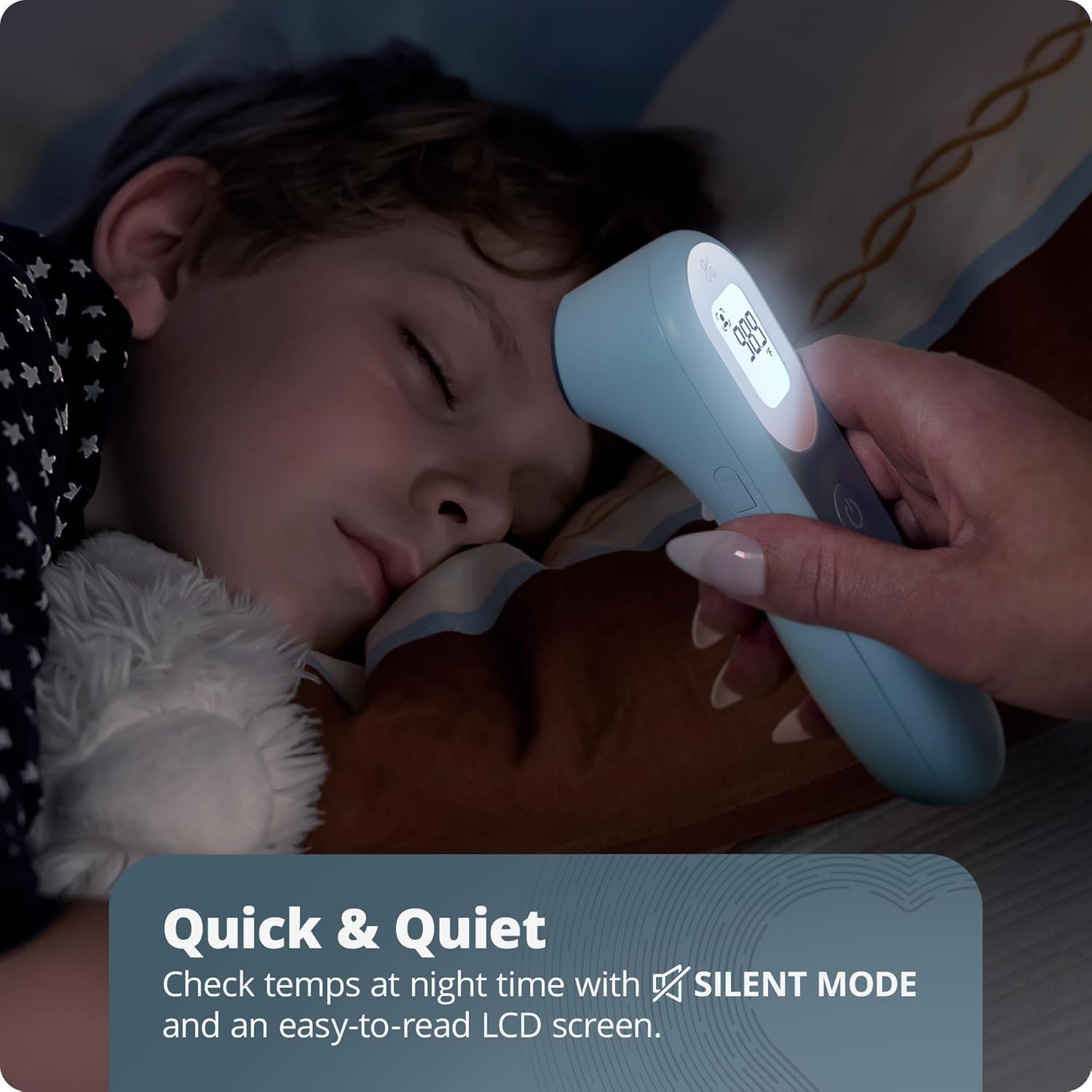 Greater Goods No-Touch Infrared Digital Thermometer for Adults, Kids, and Babies, Forehead Thermometer with Ergonomic Grip, Fever Alarm, Powder Blue