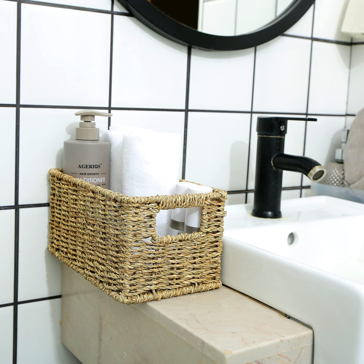 - Natural and Sustainable: these storage baskets for shelves are made of naturally grown seagrass in a woven pattern, the material is natural and friendly to the environment.