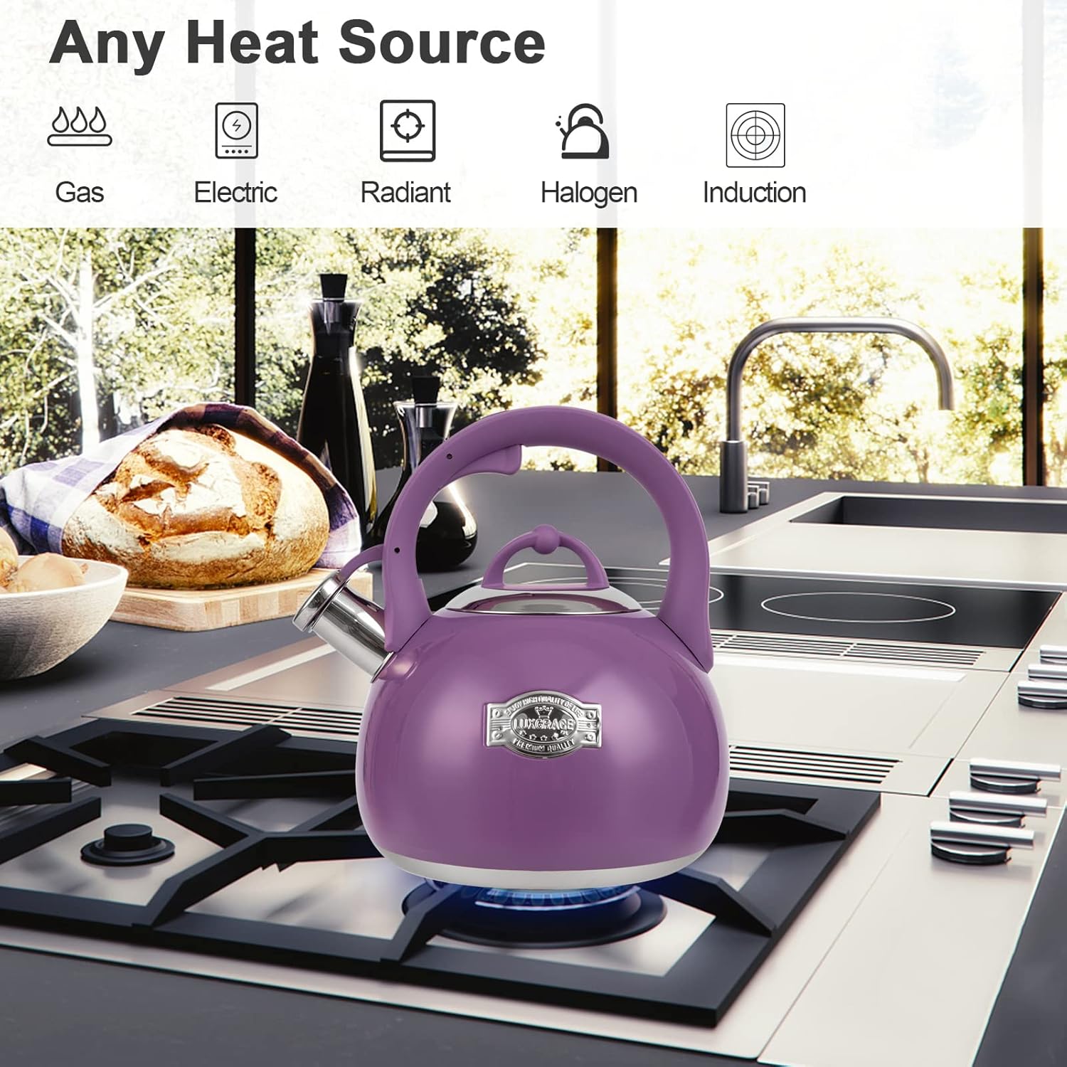 - Perfect Whistling Sound of Teakettle: This tea kettle for stovetop has a tight-fitting lid keeps steam in the hot tea kettle for rapid heating, and realse pleasant whistles sound when water reaches a boil, Loud enough to alarm you when you busy in the next room.