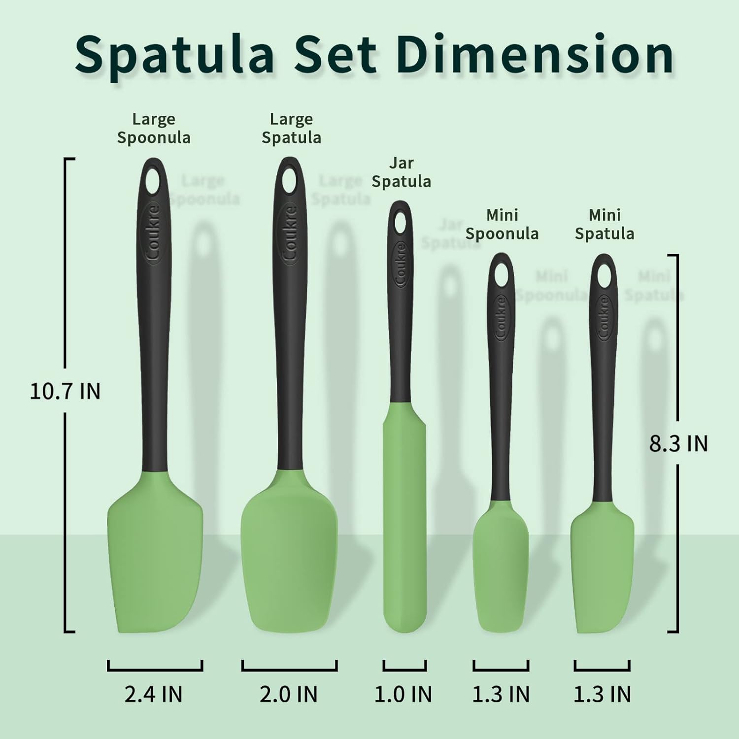 Coukre Silicone Spatula Set of 5,High Temperature Resistant, Food Grade Silicone, Dishwasher Safe, for Baking, Cooking (5, Grass Green)