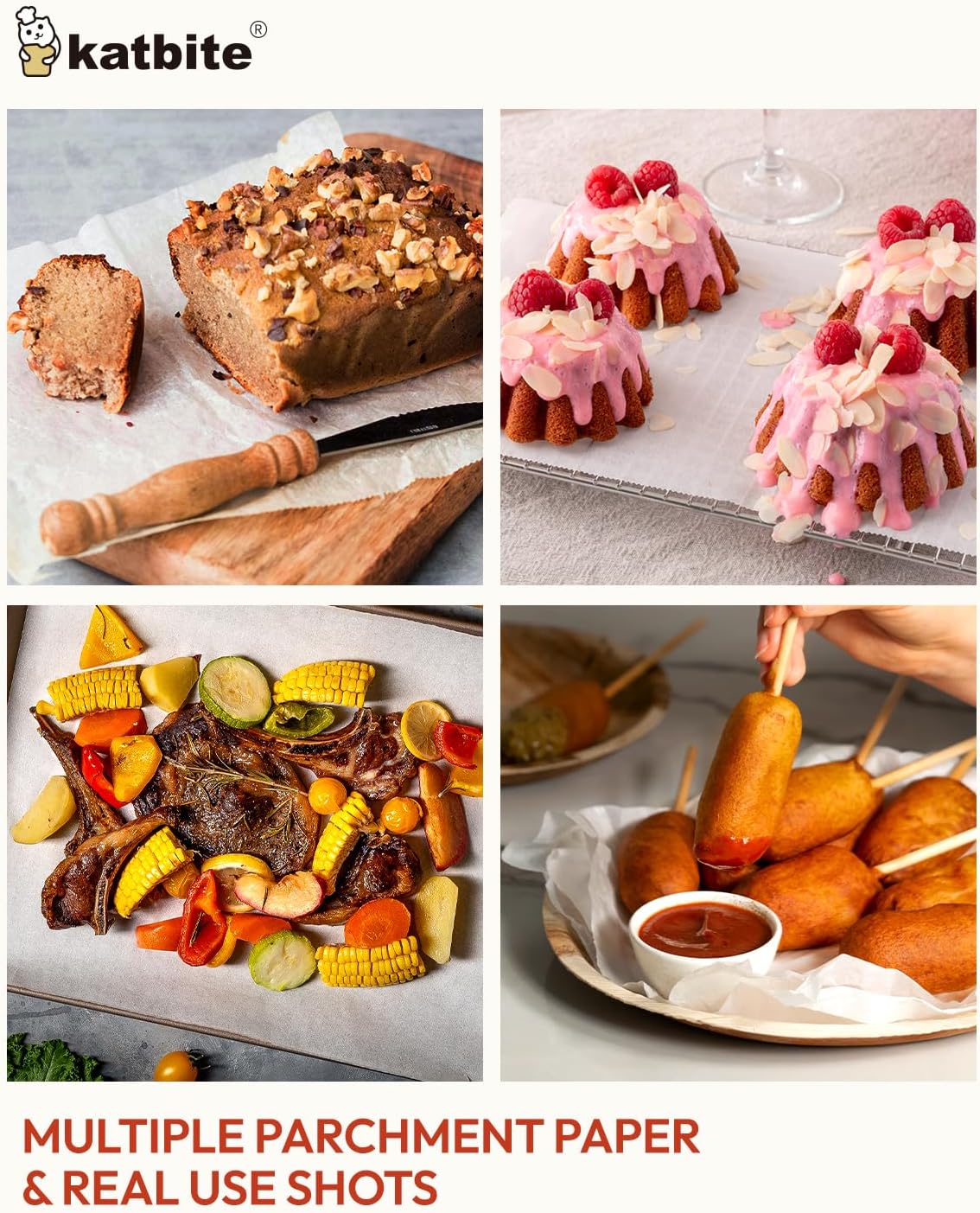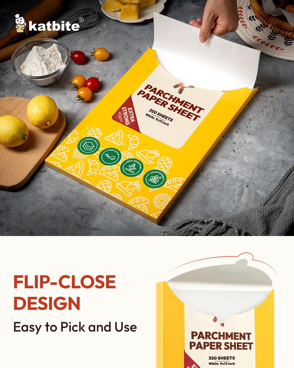 - Upgraded White Parchment: With pre-cut 350 sheets per pack, katbite parchment paper offers unbeatable value for your money. Made from high-quality 45gsm paper, our baking paper is designed to withstand temperatures from -68° F to 450° F. Non-stick prevents stick to baking tray, making your baking process breeze. Compared to 200 sheet packs, 350 sheets are more quantity. So, if you're looking for a reliable and cost-effective baking paper, look no further than our 9x13 in 350 count baking paper.