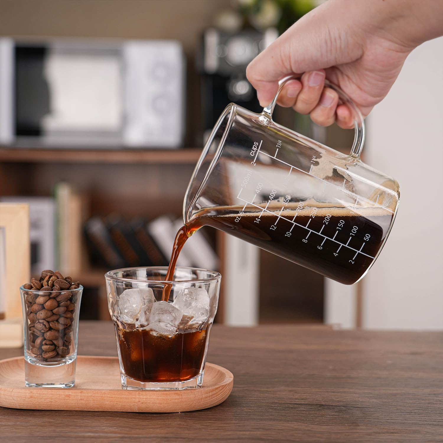 BCnmviku 500ML 2 CUP Glass Measuring Cup With Handle, High Borosilicate Glass Three Scales (OZ, Cup, ML/CC for Kitchen or Restaurant Easy To Read