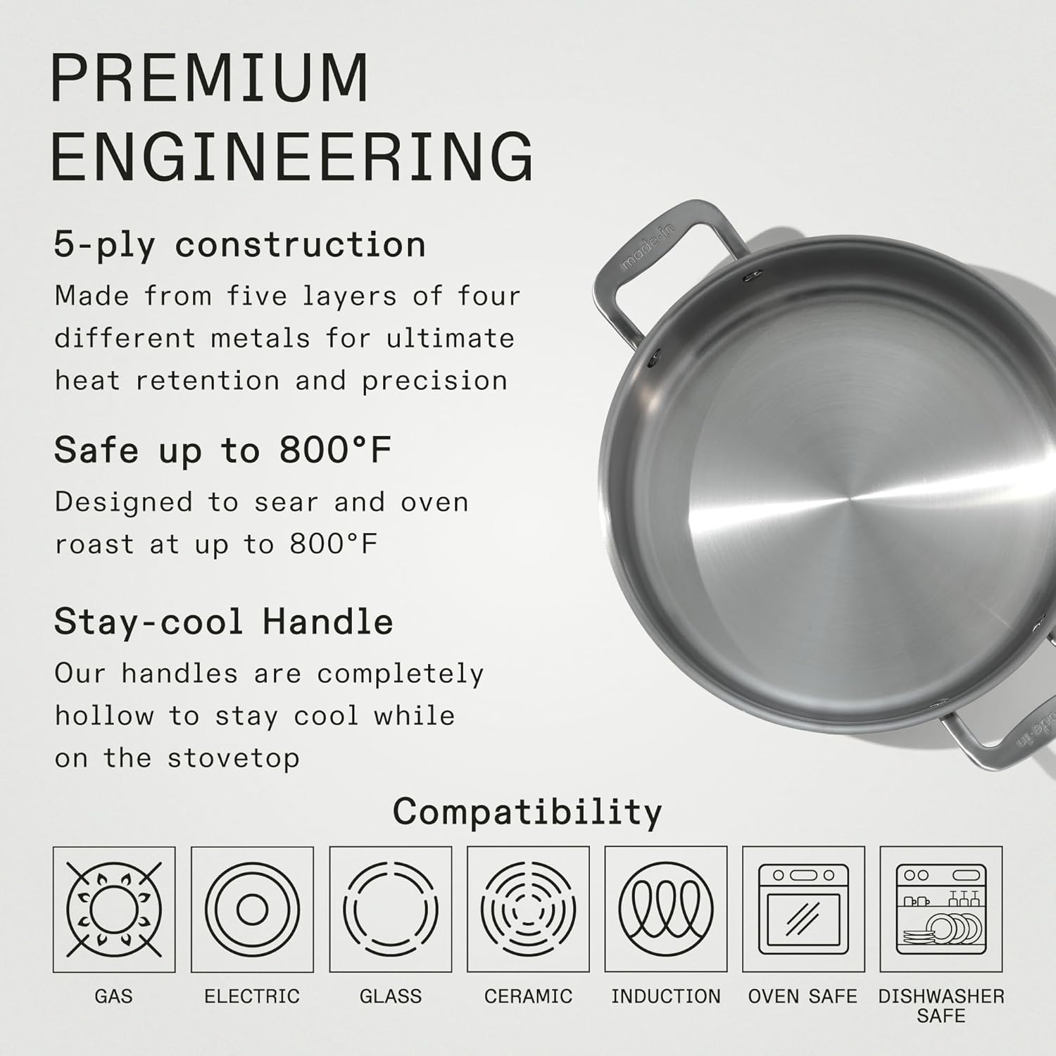 - Essential for Every Kitchen - The Made In Stainless Clad Rondeau is a must-have kitchen tool, offering maximum heat control, responsiveness, and versatility to elevate your cooking experience