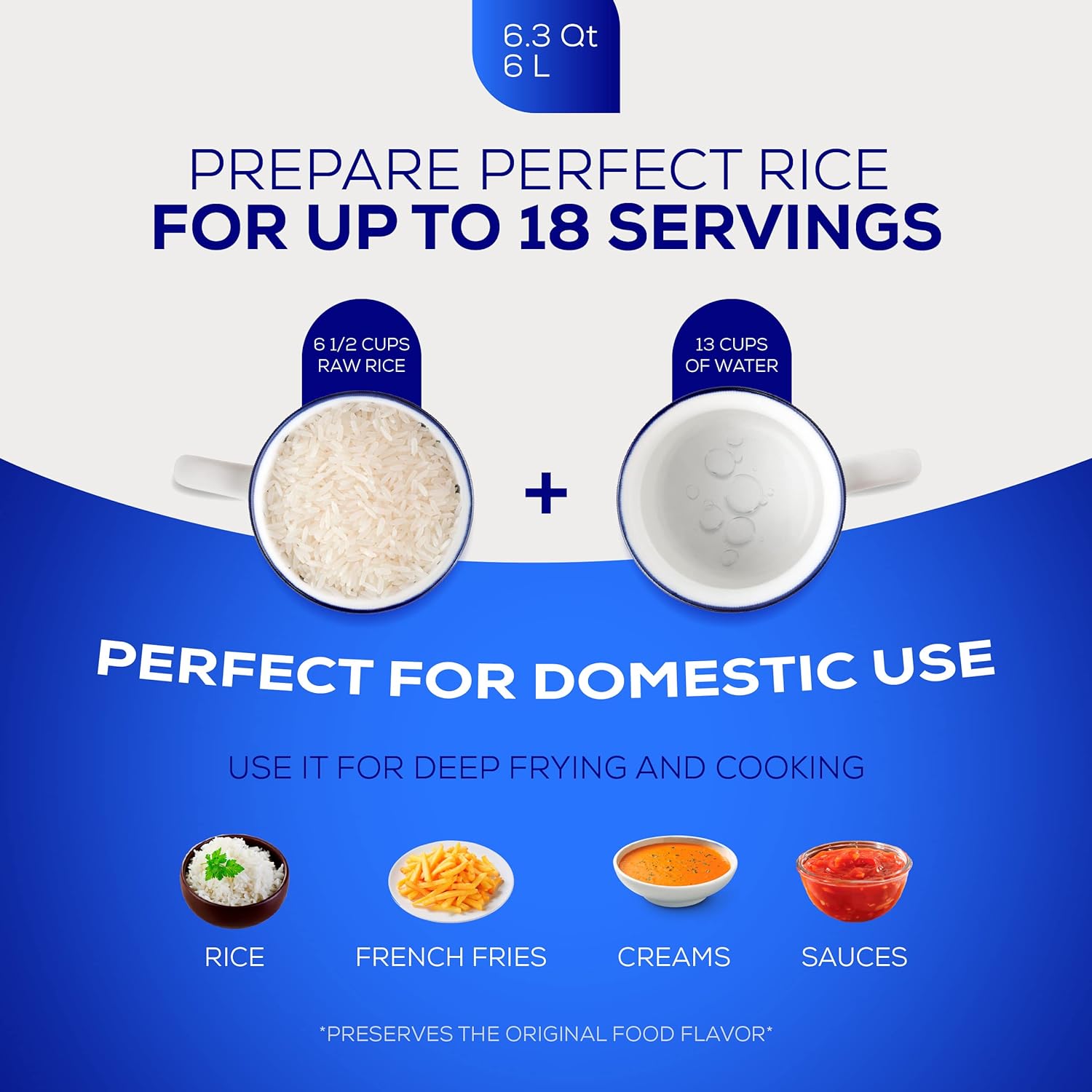 - Size : 6.3 Quart - 18 Cups