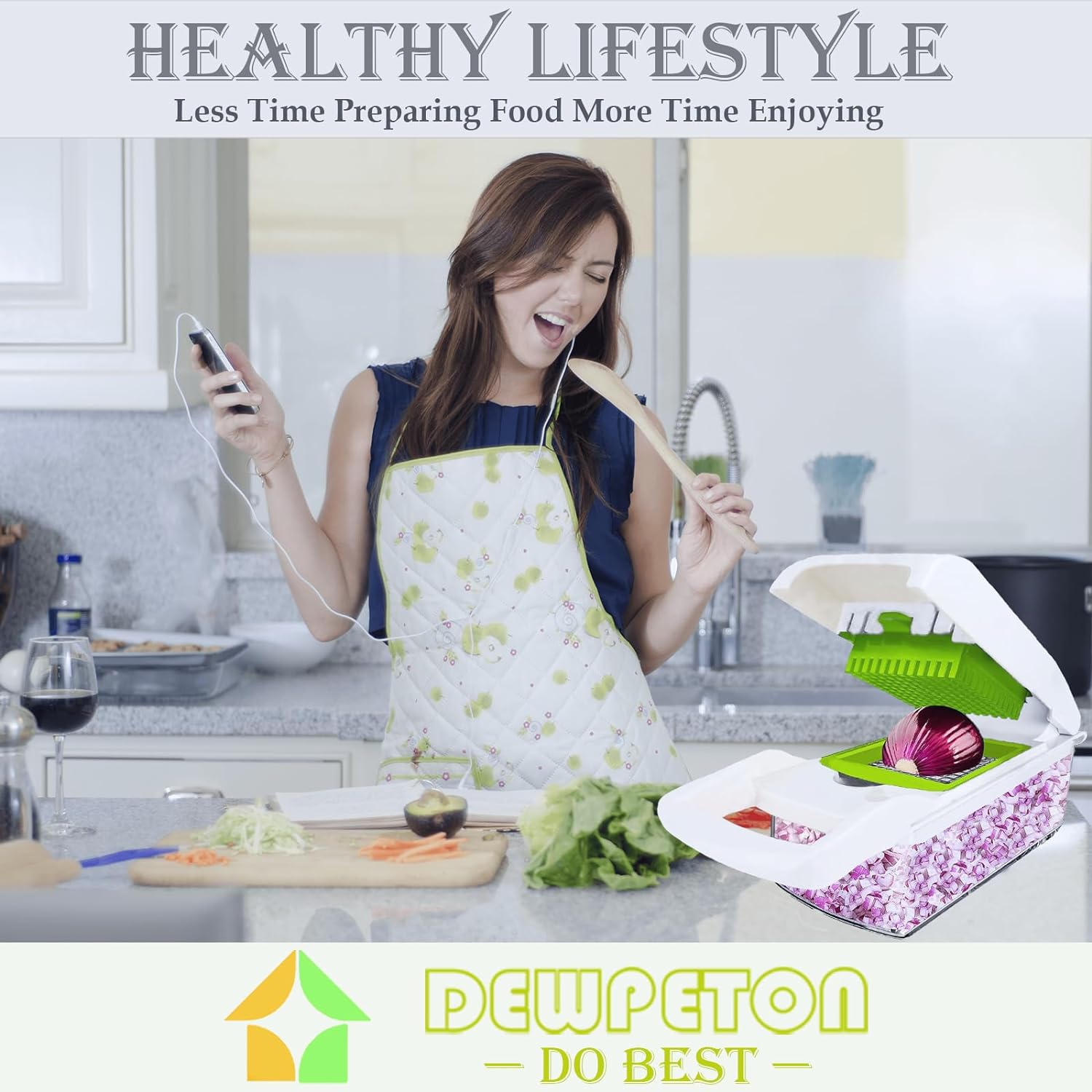 - Unmatched Quality - The blades is made of 420 stainless steel using Dewpeton unique punching blade technology, razor sharp for crisp, smooth cuts and grating. Can create perfectly chopped onions, tomatoes, and peppers for salsa, or shred an entire cabbage for coleslaw in no time. The main body of the vegetable chopper is made from food-grade ABS plastic to guarante healthy meals for your family.