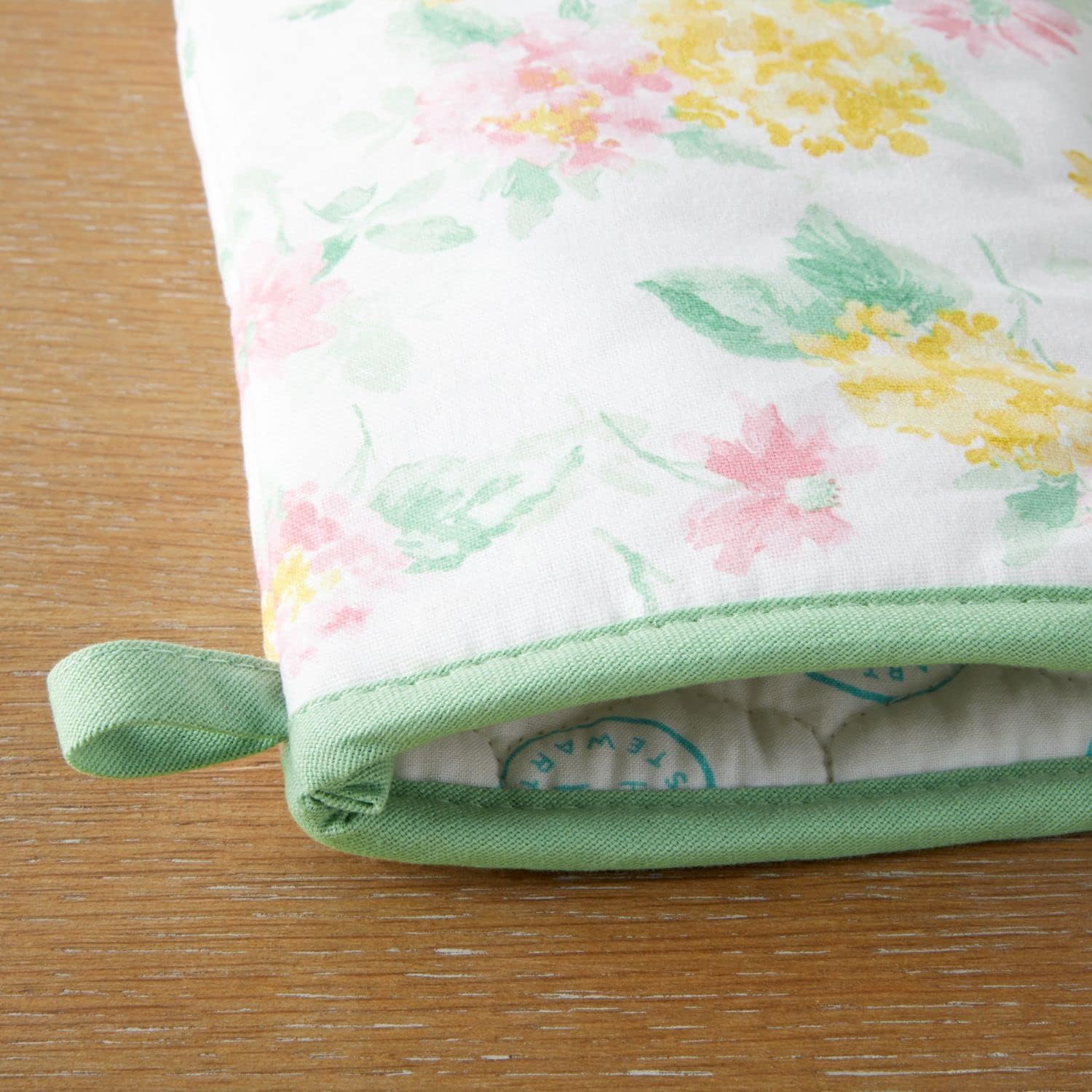 - WATERCOLOR FLORAL DESIGN: The Martha Stewart Amber Floral Oven Mitt & Pot Holder Set is beautifully printed with a watercolor floral design that will brighten your kitchen while cooking and baking.