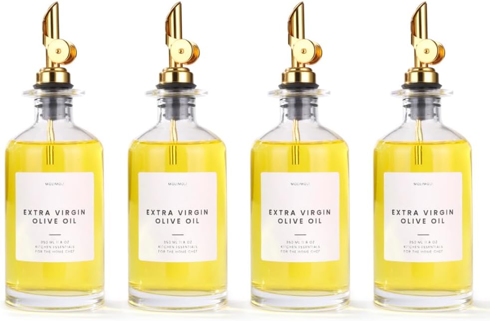 Molimoli Glass Olive Oil Cruet Set - 350ml Bottles With Weighted Pourers, Set of 4