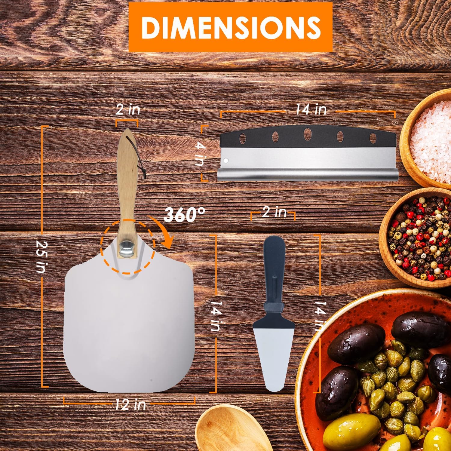 - 【Professional Pizza Cutter & Pizza Shovel】- Pizza oven accessories include a covered pizza cutter and a pizza shovel. With a sharp blade, it rocks back and forth to slice the pizza with perfect slices. After cutting the slices, you can use the pizza shovel to distribute the pizza slices to family members or guests, so that everyone can enjoy delicious food together.
