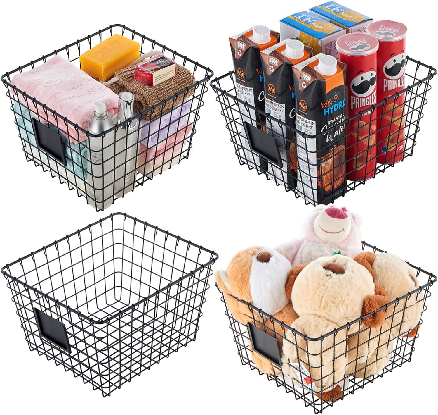 - Wide range of uses: Wire basket of pure manual craft, novel design, easy to use, it is equipped with a label card slot, let you easily receive, mesh design make the items in the wire basket at a glance, breathable and filtered water quickly, suitable for all kinds of occasions, Such as: wardrobe, cabinet, office, bathroom, living room and storage scene and other Spaces.