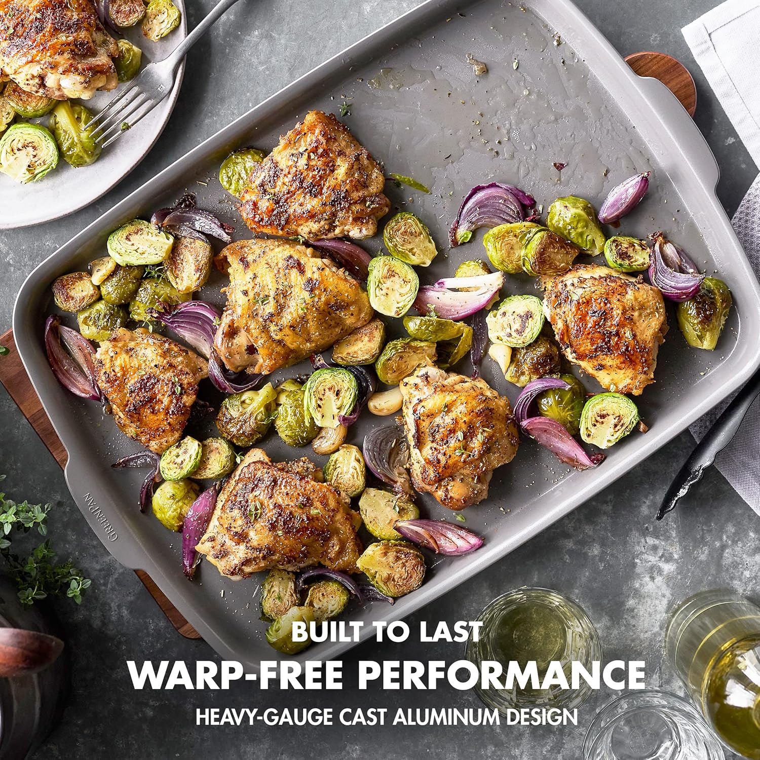 GreenPan Premiere Ovenware Healthy Ceramic Nonstick 13" x 9" Quarter Sheet Baking Pan, PFOA & PFAS-Free, Warp-Free Bakeware, Durable Quick Heating, Oven & Broiler Safe to 600F, Dishwasher Safe, Gray