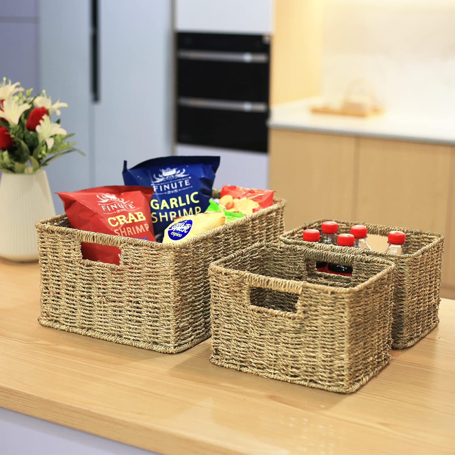 - Materials: these pantry baskets are made of natural seagrass material, the wicker baskets will add plain sight to your room.