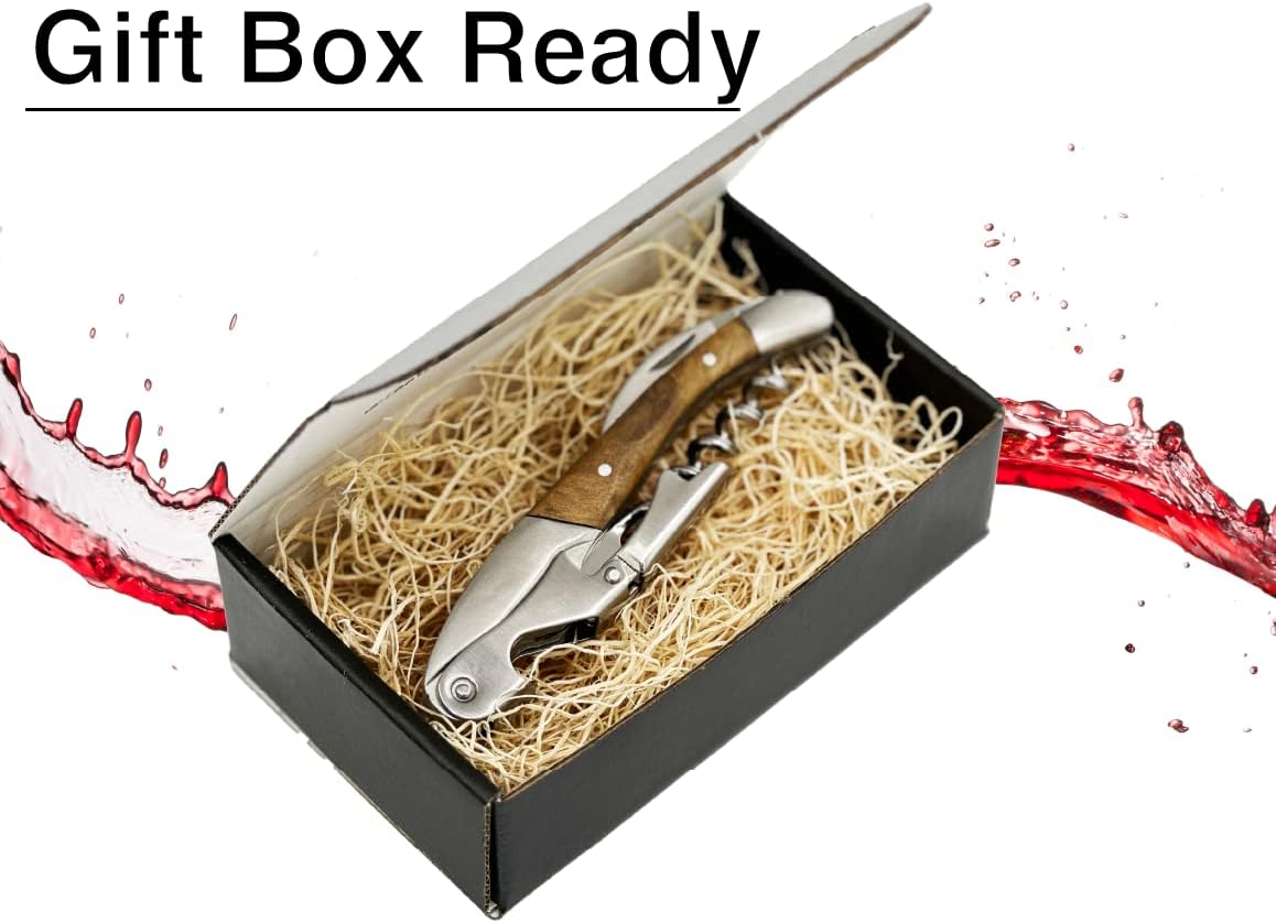 - Premium Wine Opener: Our easy-to-use double-level corkscrew wine opener will assure no corks crumbling in your wine with minimal effort as our corkscrew features a precision-cut spiral worm that glides effortlessly into any type of cork. The grooved worm is specially designed to easily start into a cork thanks to the optimally pointed area and easily removes any type of cork.