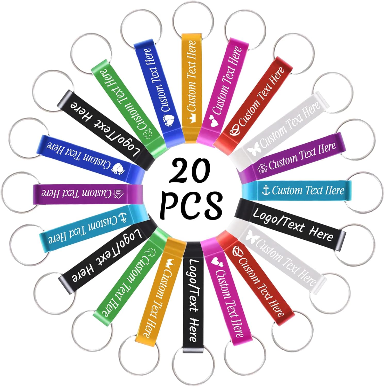 YanNanKe 20PCS Personalized Aluminum Bottle Opener Keychains with Logo Text Engraved Wedding Bottle Opener Favors Customized Gifts for Guests Baby Shower Birthday Party