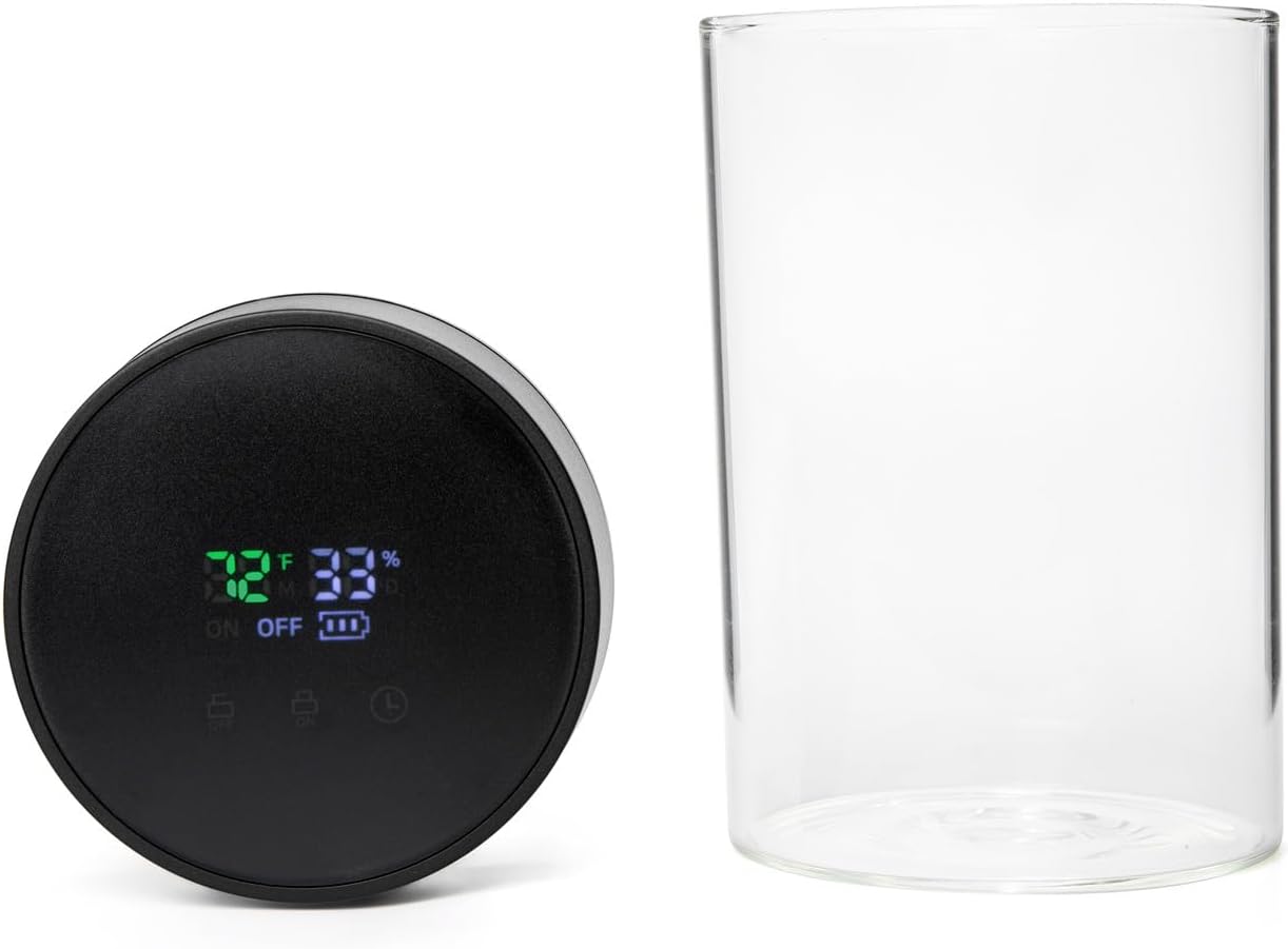Herb Guard Auto-Cure Smart Jar and Vacuum Seal Curing Jar with Built In Hygrometer (1 Liter / 2 Oz Capacity) Curing Kit & Child Resistant Container Keeps Herbs and Serving Spices Fresh for Months