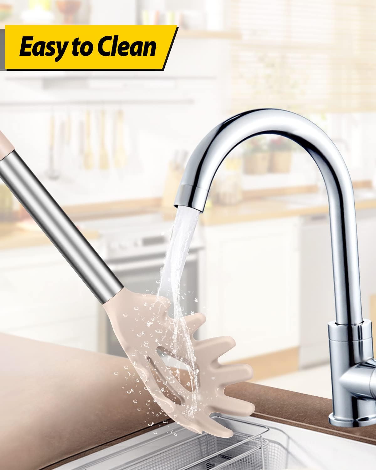 - Thoughtful Design : The good-quality 18/8 stainless steel keeps you away from the trouble of kitchen utensils rusting or breaking; This anti-scald silicone handle is not easy to conduct heat and is more comfortable to hold than traditional utensils