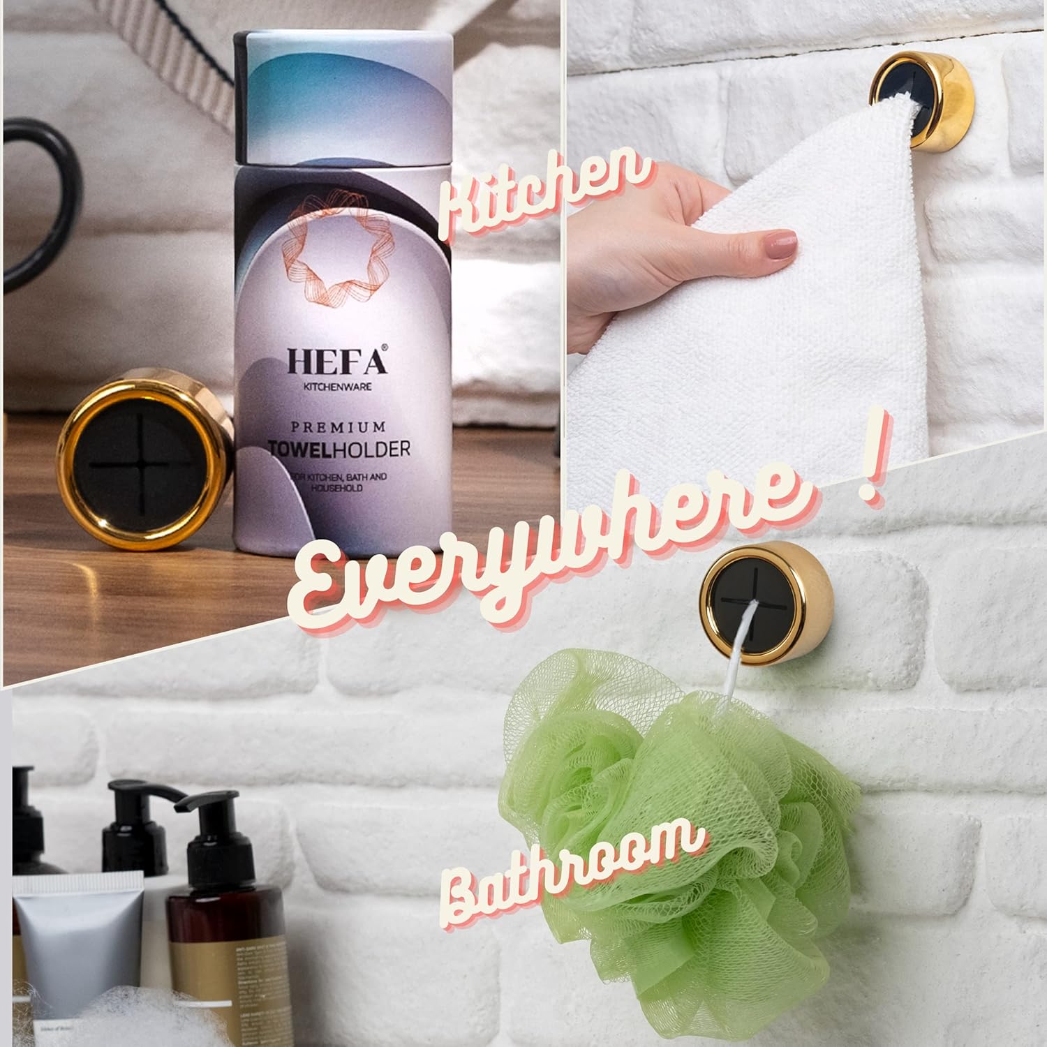 HEFA Modern Kitchen Towel Holder, 4 Pack Golden Yellow Chrome Plated Plastic Towel Hooks with Easy Install, Holds Up to 2 Pounds Each