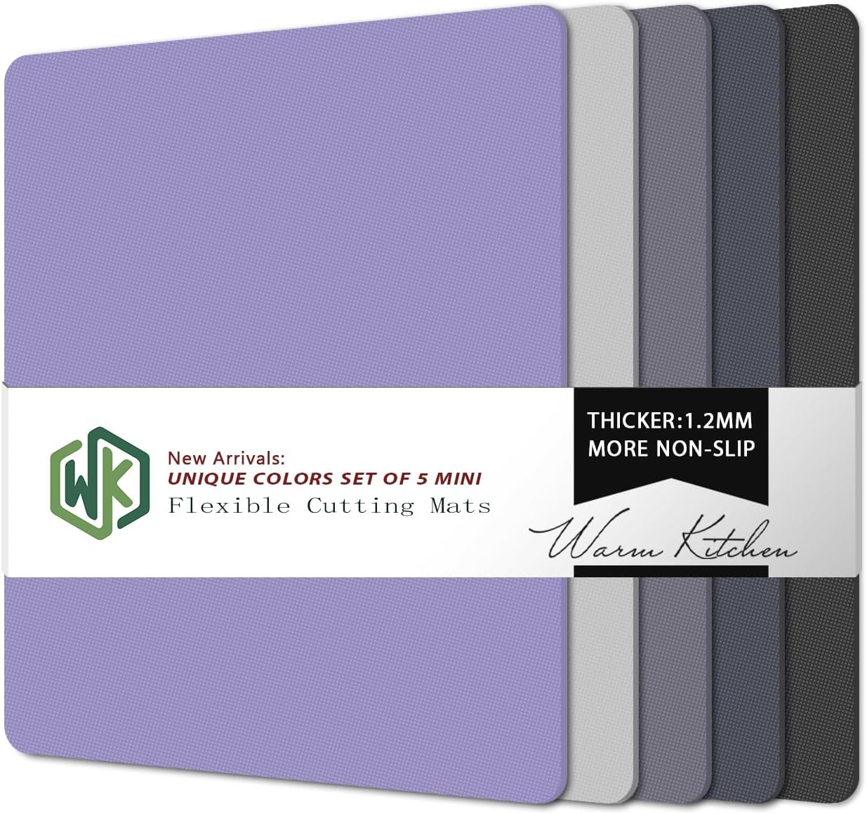 WK Small Flexible Plastic Cutting Boards for Kitchen Set of 5, Non Slip Cutting Mats for Meat, Mini Cutting Board Mats, BPA Free, Dishwasher Safe, 7.3x11.5"
