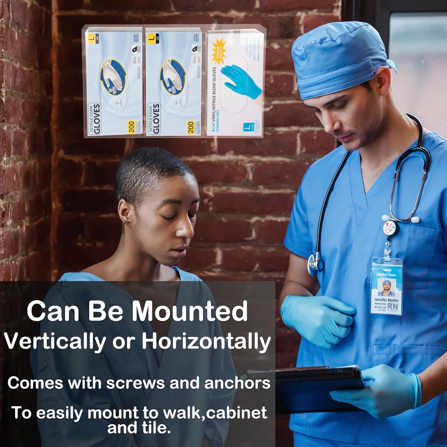 - 【PERFECT DIMENSIONS】Size:10.07" x 3.55" x 16.34". Tested thoroughly with many of the top bulk glove box brands. Fits various standard size rectangular glove boxes. Meticulously measured for the perfect fit! Comes with screws and anchors to easily mount to wall, cabinet, tile or flat surface in location convenient to staff. Can be mounted vertically or horizontally.