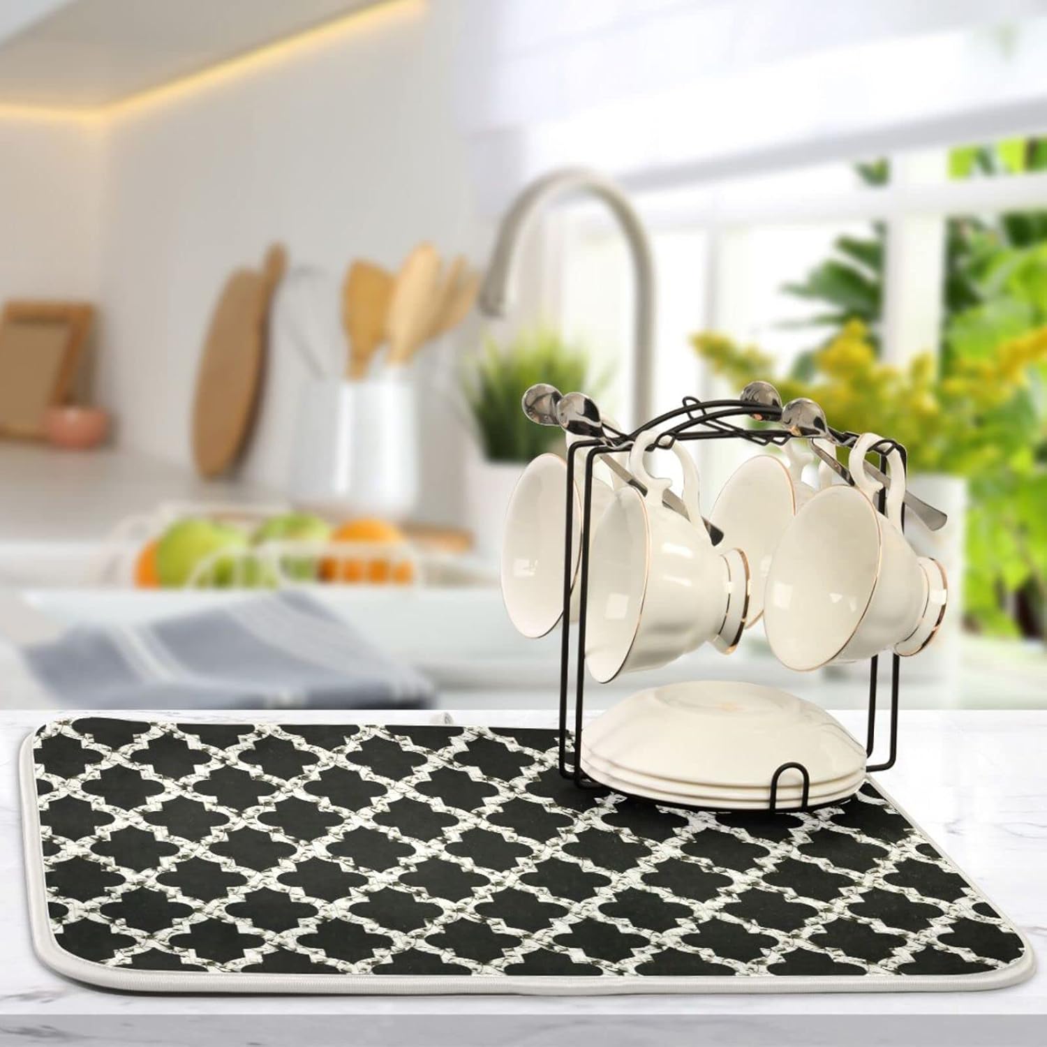 senya Super Absorbent Dish Drying Mat, Microfiber Fast-Drying Dish Mat, 16'' x 18'', Kitchen Dish Drying Pad, Geometry Texture Classic Modern