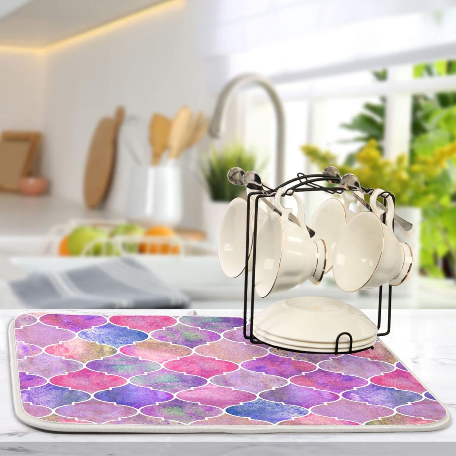 senya Super Absorbent Dish Drying Mat, Microfiber Fast-Drying Dish Mat, 16'' x 18'', Kitchen Dish Drying Pad, Vintage Decorative Moroccan,16x18in