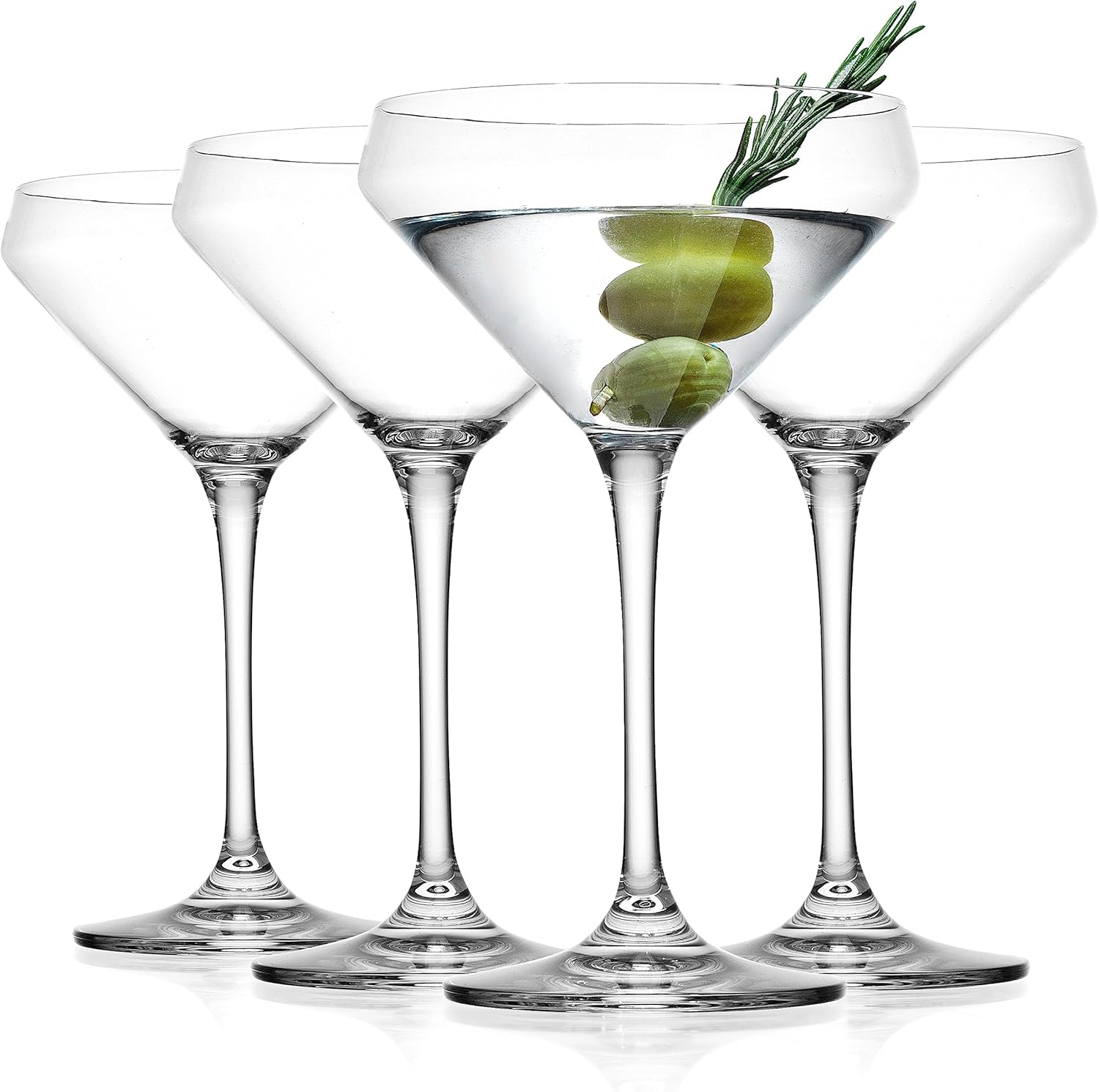 - HIGH QUALITY: Our tall glasses are made of High-Quality 100% Safe Glass, All Glavers Martini glasses are BPA-free, and Lead-Free. The base of the stem is thicker, providing a better grip and balance. The rim of the glasses is rounded for comfortable and safe sipping. Our Clear Martini Glasses are Dishwasher Safe!