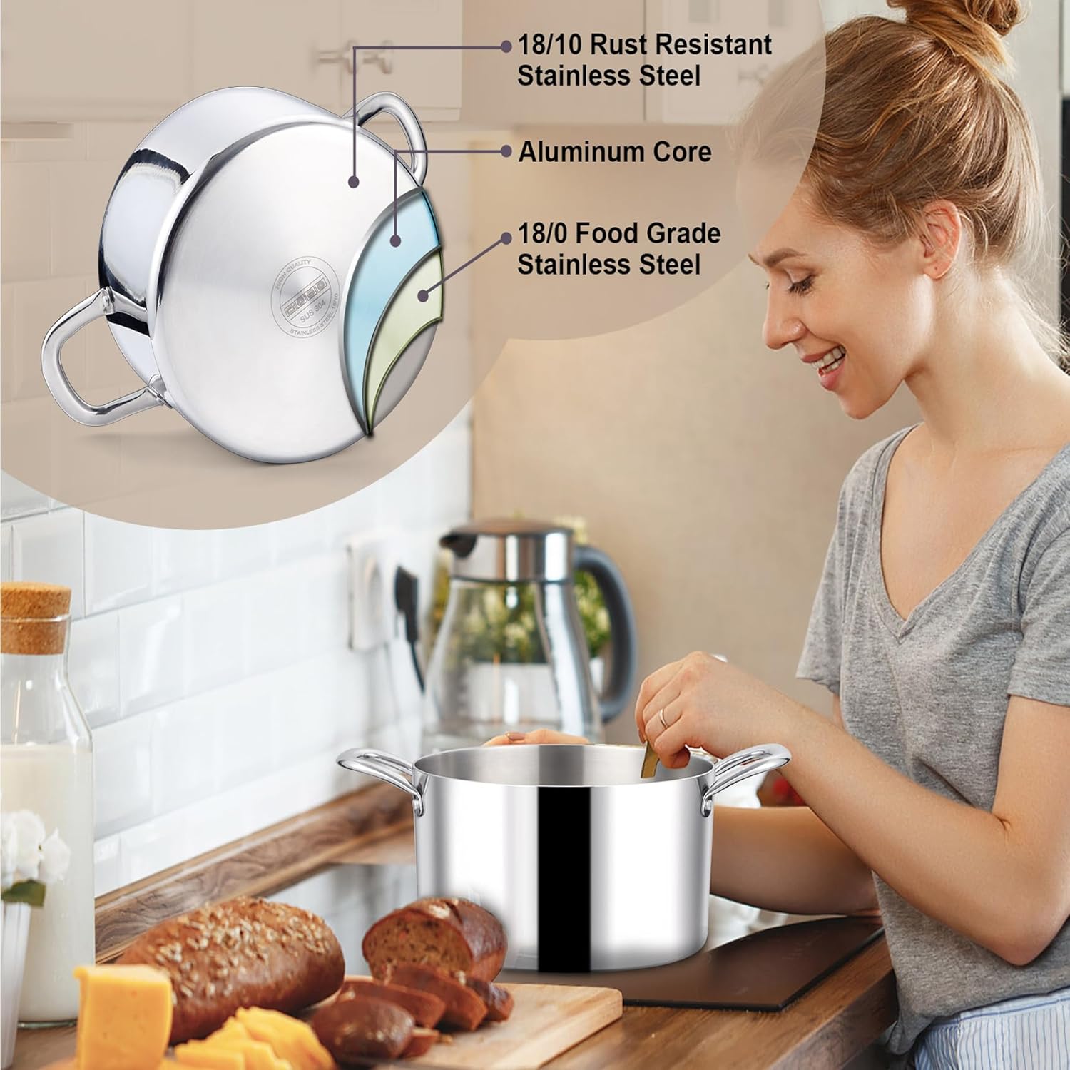LIANYU 8QT 18/10 Stainless Steel Stock Pot with Lid, 8 Quart Stockpot with Triple Ply, Heavy Duty Big Cooking Pasta Soup Canning Induction Pot for Boiling Strew Simmer