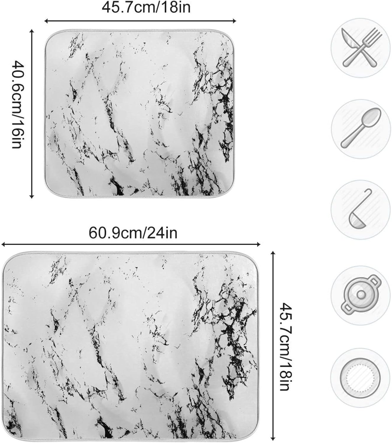 Super Absorbent Dish Drying Mat, Microfiber Fast-Drying Dish Mat, 16" x 18", Kitchen Dish Drying Pad, White Marble