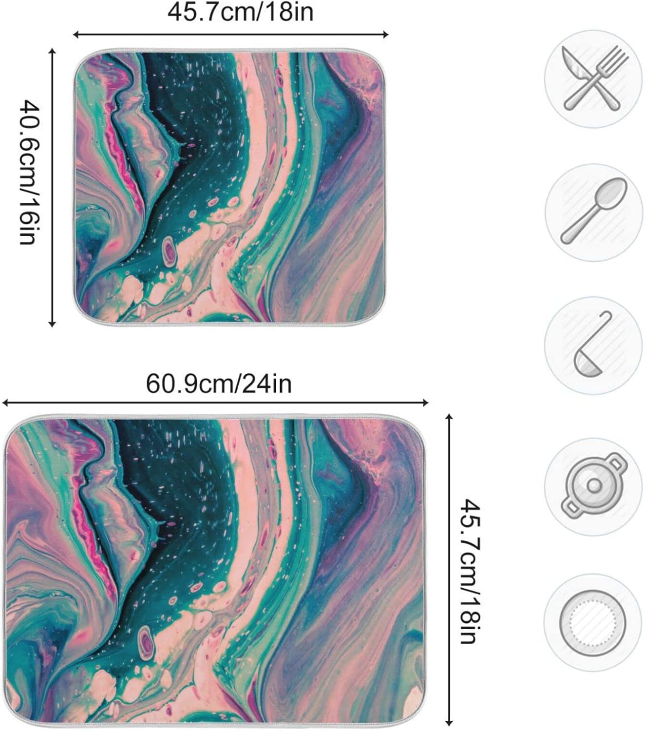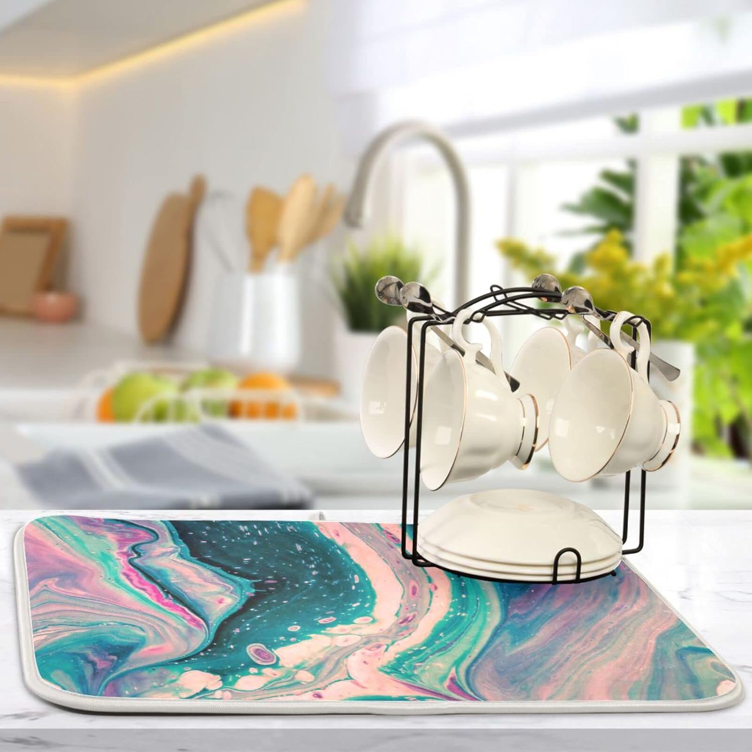 Super Absorbent Dish Drying Mat, Microfiber Fast-Drying Dish Mat, 16" x 18", Kitchen Dish Drying Pad, Marble Pink Green