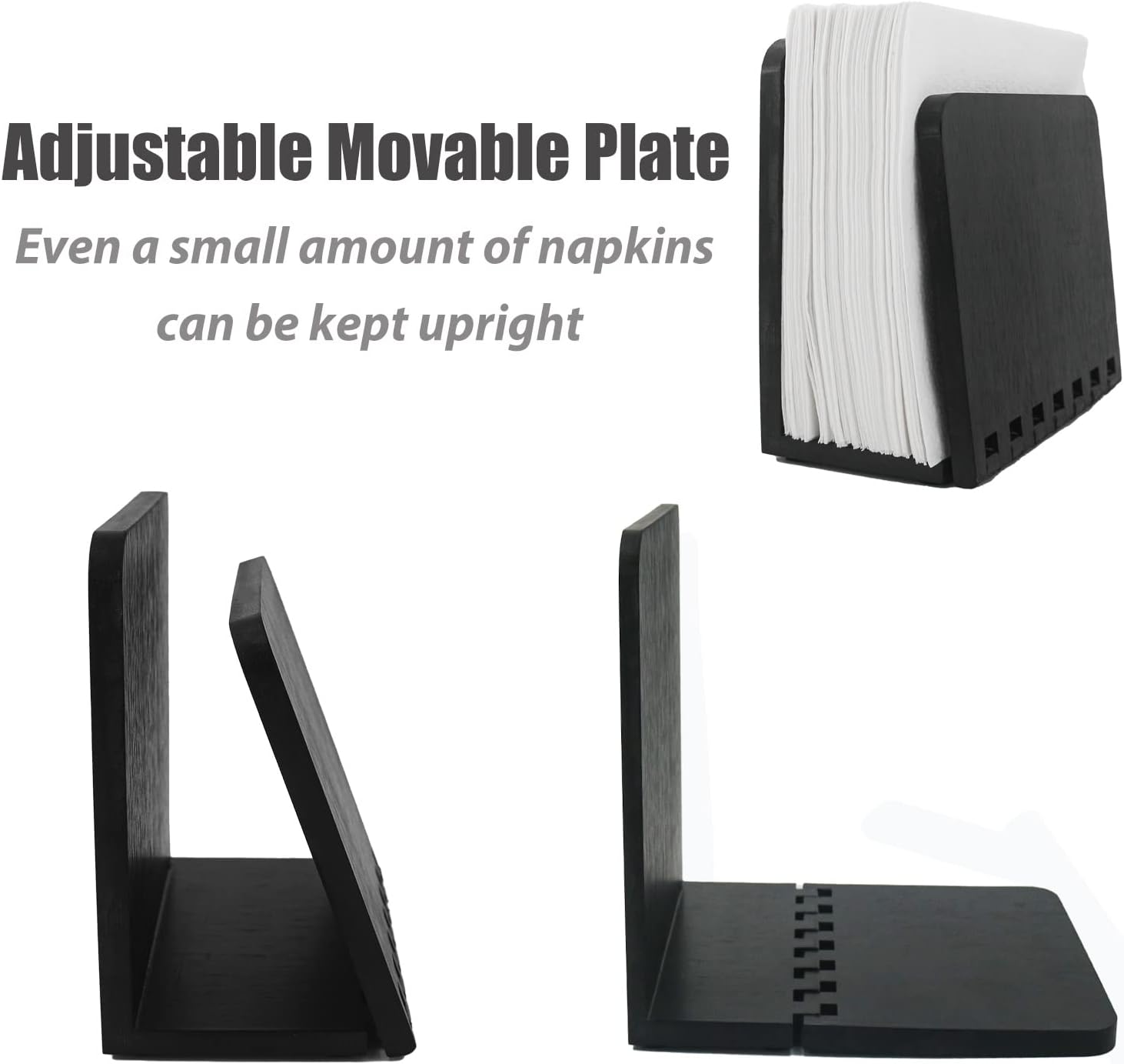Bamboo Napkin Holder, Adjustable Wood Storage Rack for Dining Room, Picnic, Kitchen Table Indoor Outdoor - Dispenser for Table (Black)