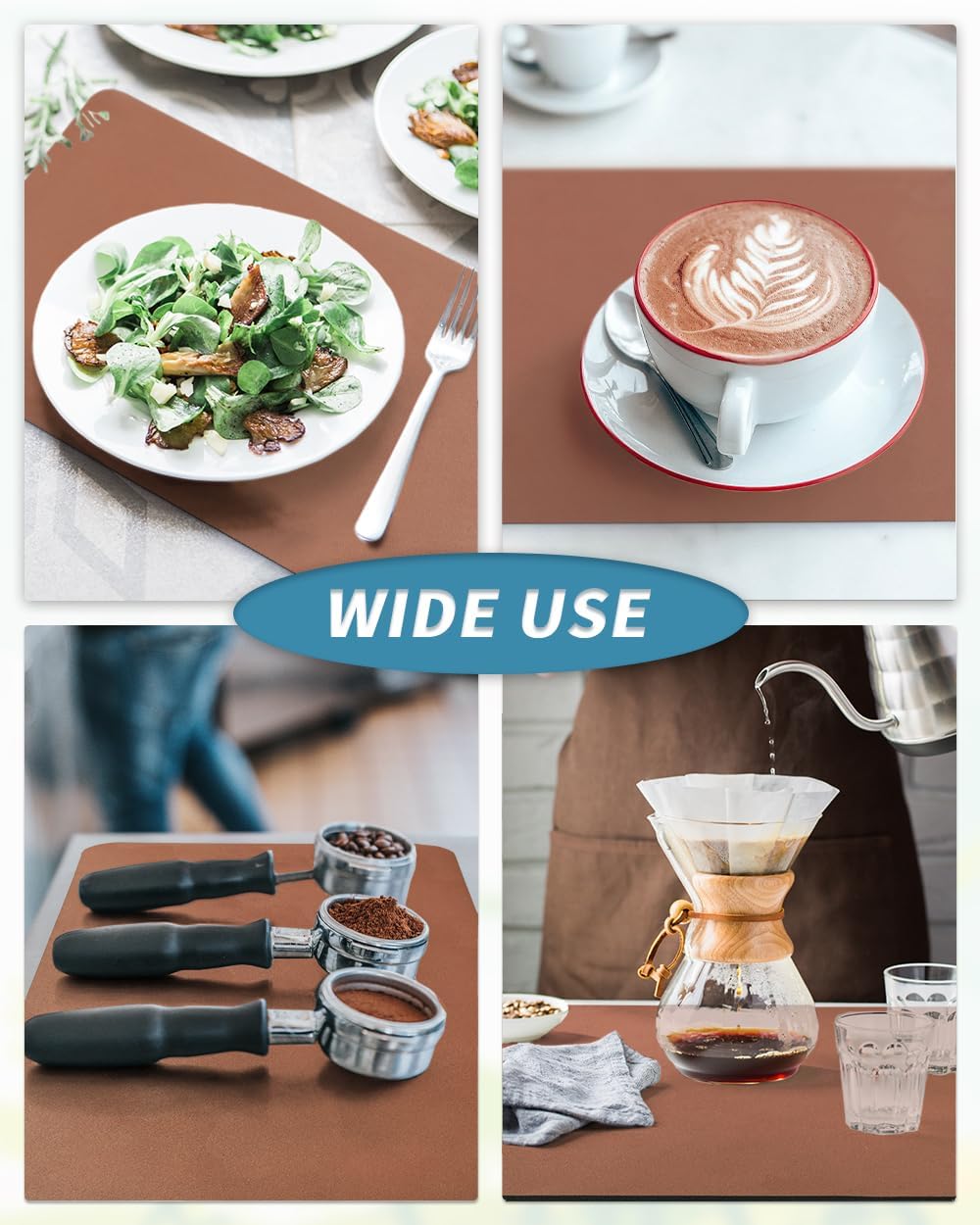 - NO WATER MARKS: 0.2" thick special PU surface hide coffee stains, milk stains and any other dark messy stains well. Say goodbye to traditional coffee mat full of stains