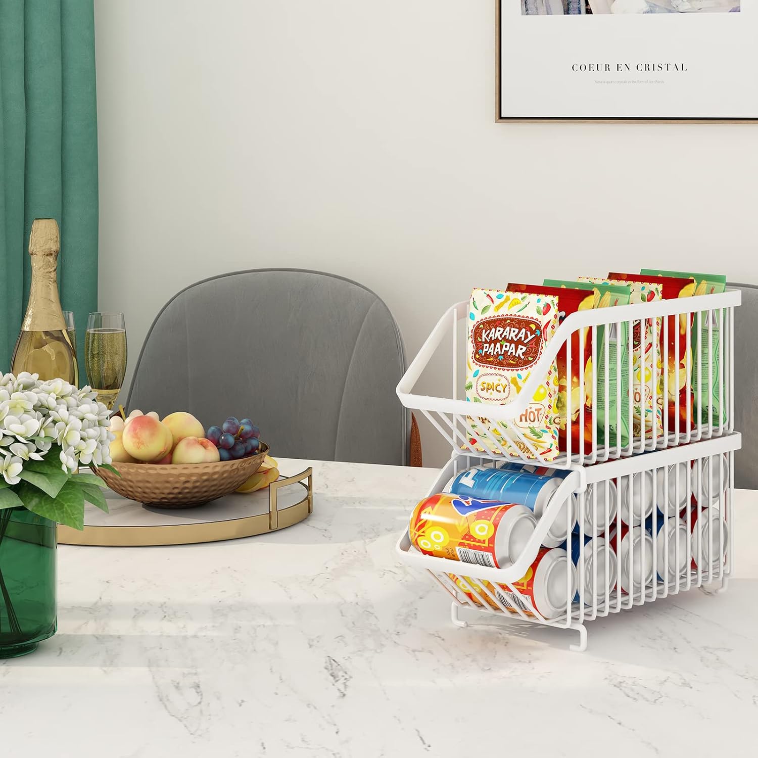 - Stackable Design: This stackable beverage soda can organizer rack was the stackable design. You can overlay 2 baskets together or use each basket alone.The stackable design maximizes storage space which ideal for organizing small or crowded kitchen spaces and keep your fridge organized