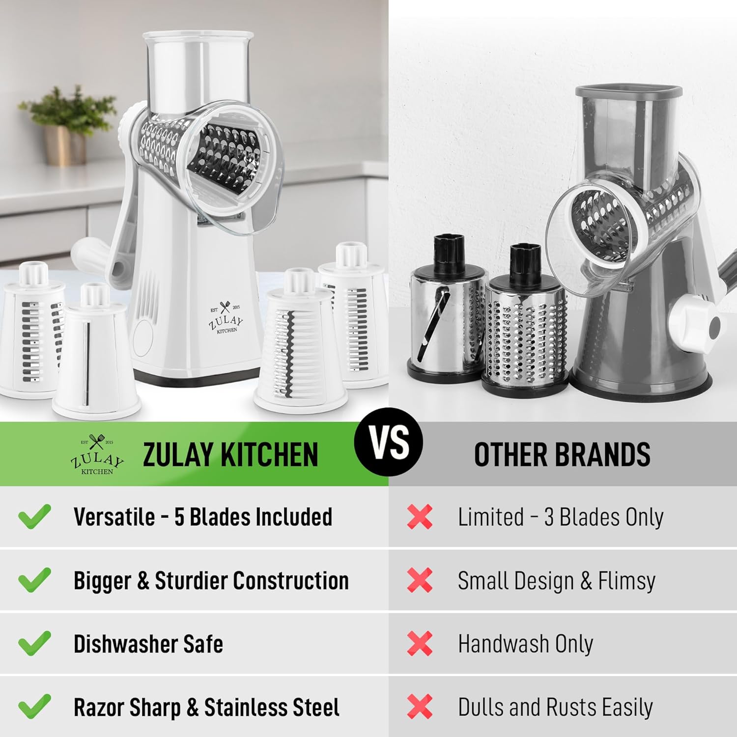 - HASSLE-FREE, ZULAY GUARANTEE: We are a Family Owned USA Business that believes in providing customers with the best-quality products. Our cheese shredder is backed with a lifetime warranty. If there are any issues, just contact us, and we will always be available to make it right.