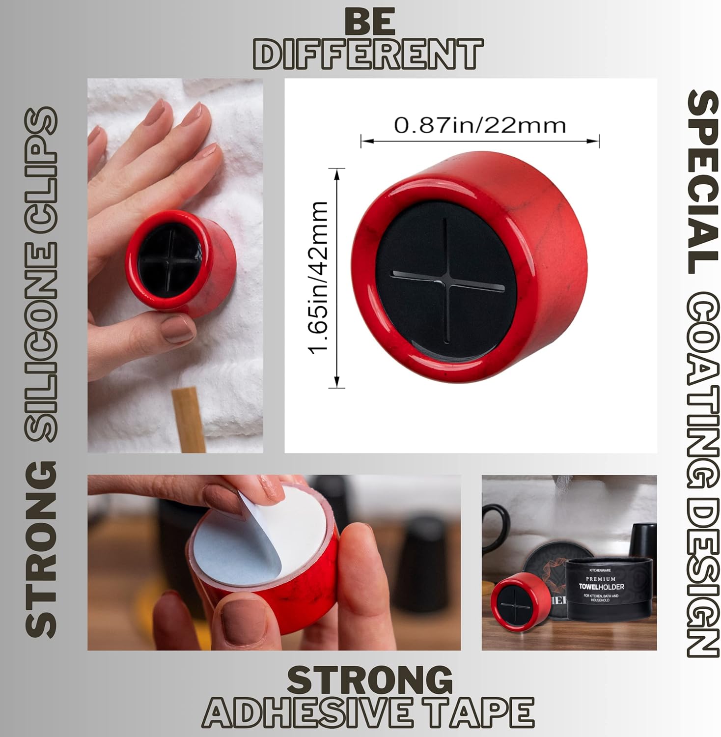 HEFA Towel Hooks, Towel Holder, Dish Towel Holder, Kitchen Organization, Kitchen Towel Hook, Kitchen Towel Holder, Hand Towel Holder, Kitchen Gadgets 8 Pack Eco, Fire Red