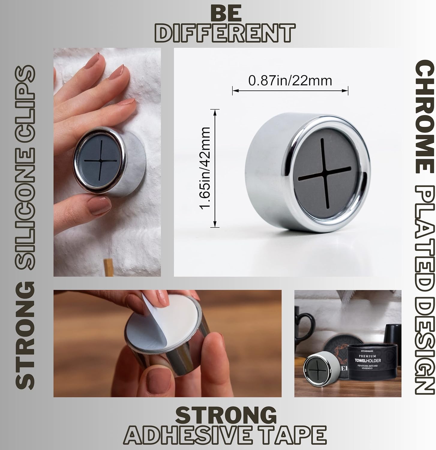 - Elegance & Premium Design - Our towel hooks feature a premium and exclusive design with a chrome plated plastic body that's both elegant and durable. Unlike similar hangers, our product uses high-quality materials for long-lasting use. You'll appreciate the premium feel and user experience when you hold our product in your hands.
