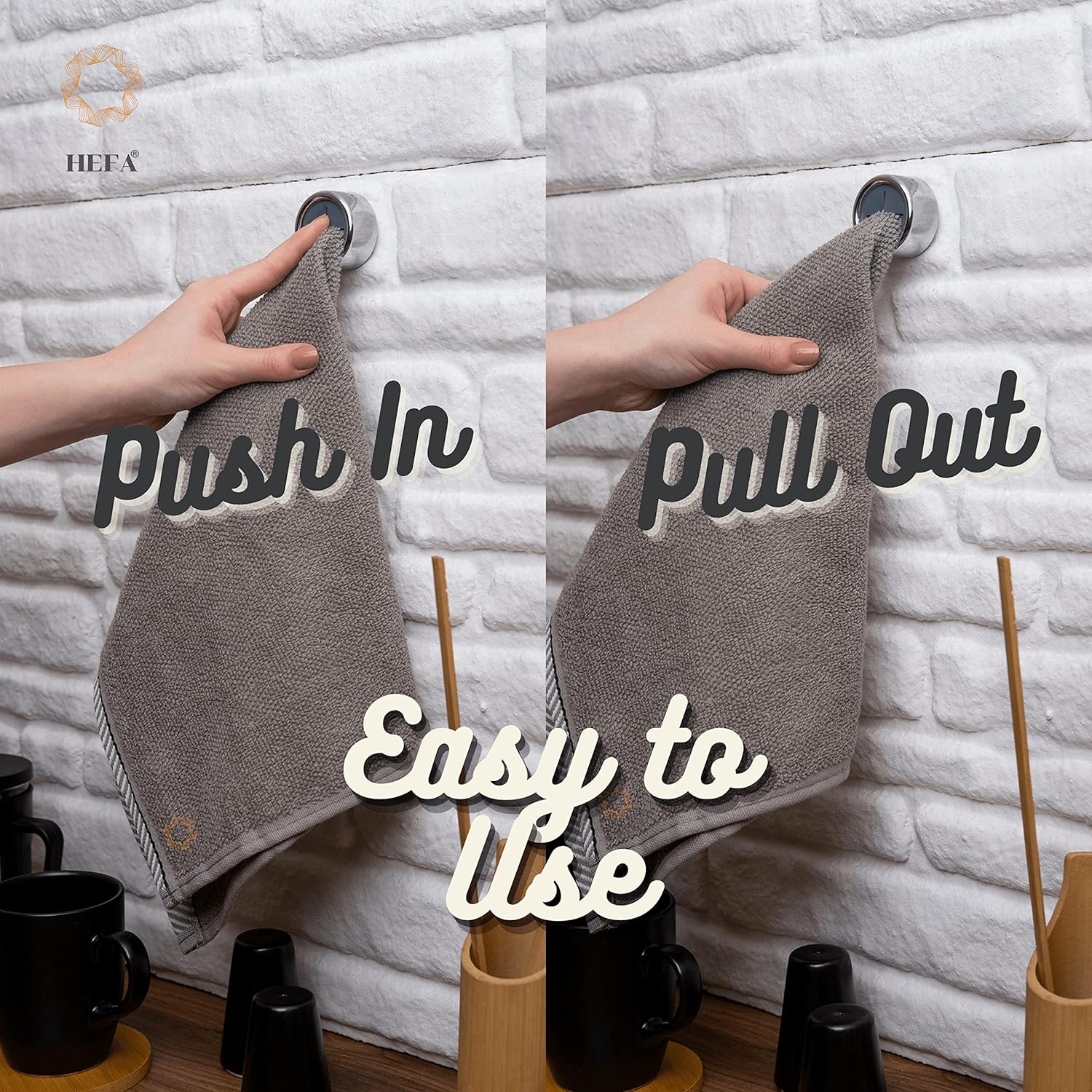 - Effortless Organization - Our practical towel hooks are versatile and easy to use. Hang hand towels, dishcloths, gloves, aprons, and more in your kitchen or bathroom. The silicone grips use a physical buckle principle to hold towels tightly without causing damage. Simply push and release to add or remove your towel.