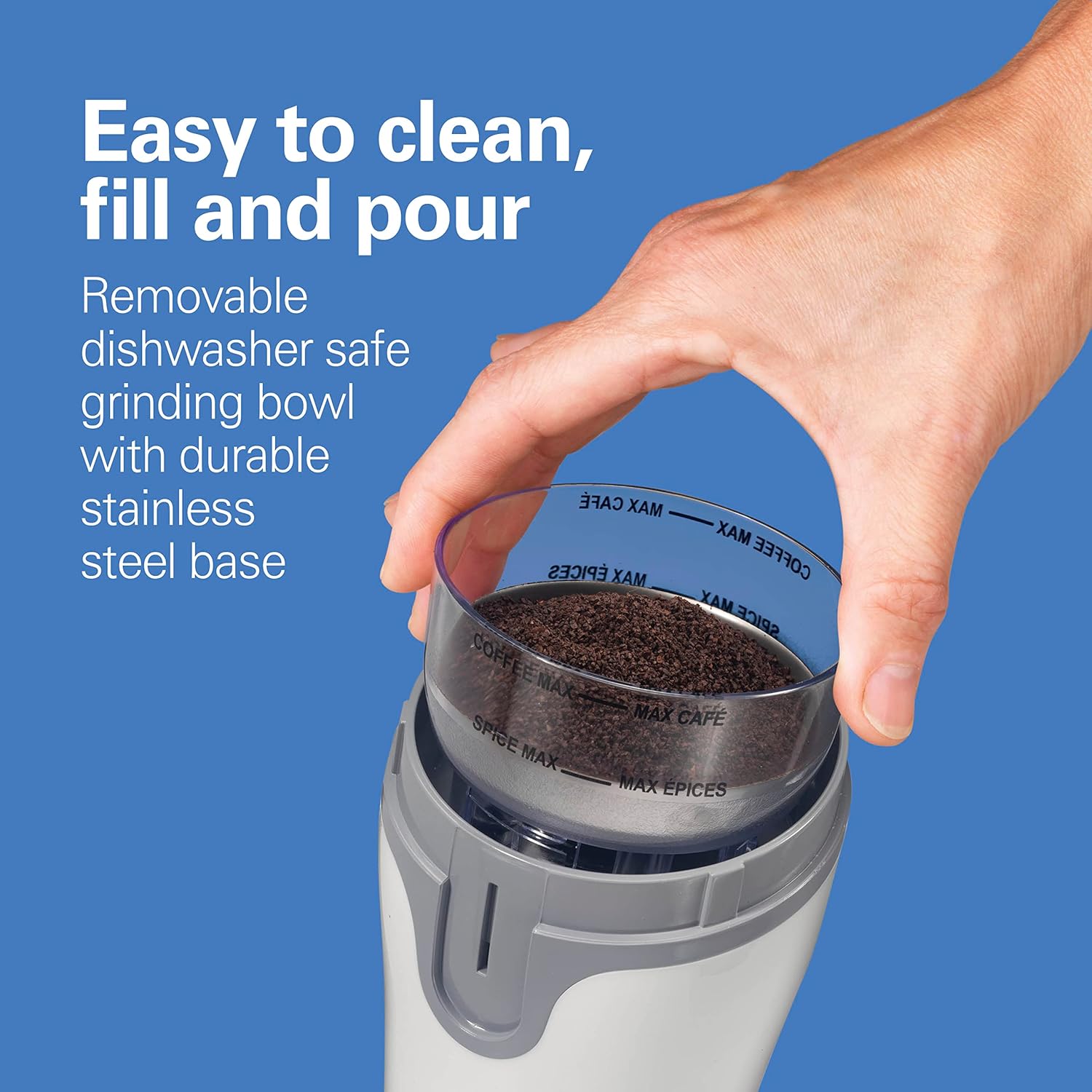Hamilton Beach Fresh Grind Electric Coffee Grinder for Beans, Spices and More, Stainless Steel Blades, Removable Chamber, Makes up to 12 Cups, White