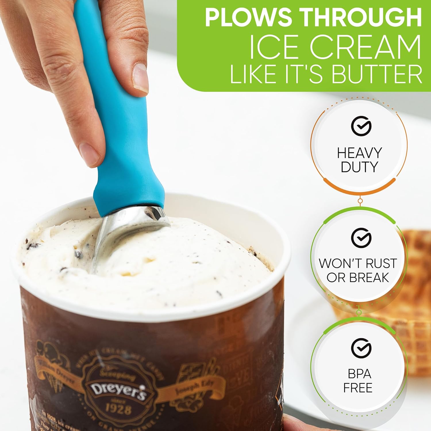 Spring Chef Ice Cream Scoop with Comfortable Handle, Professional Heavy Duty Sturdy Scooper, Premium Kitchen Tool for Cookie Dough, Gelato, Sorbet, Teal