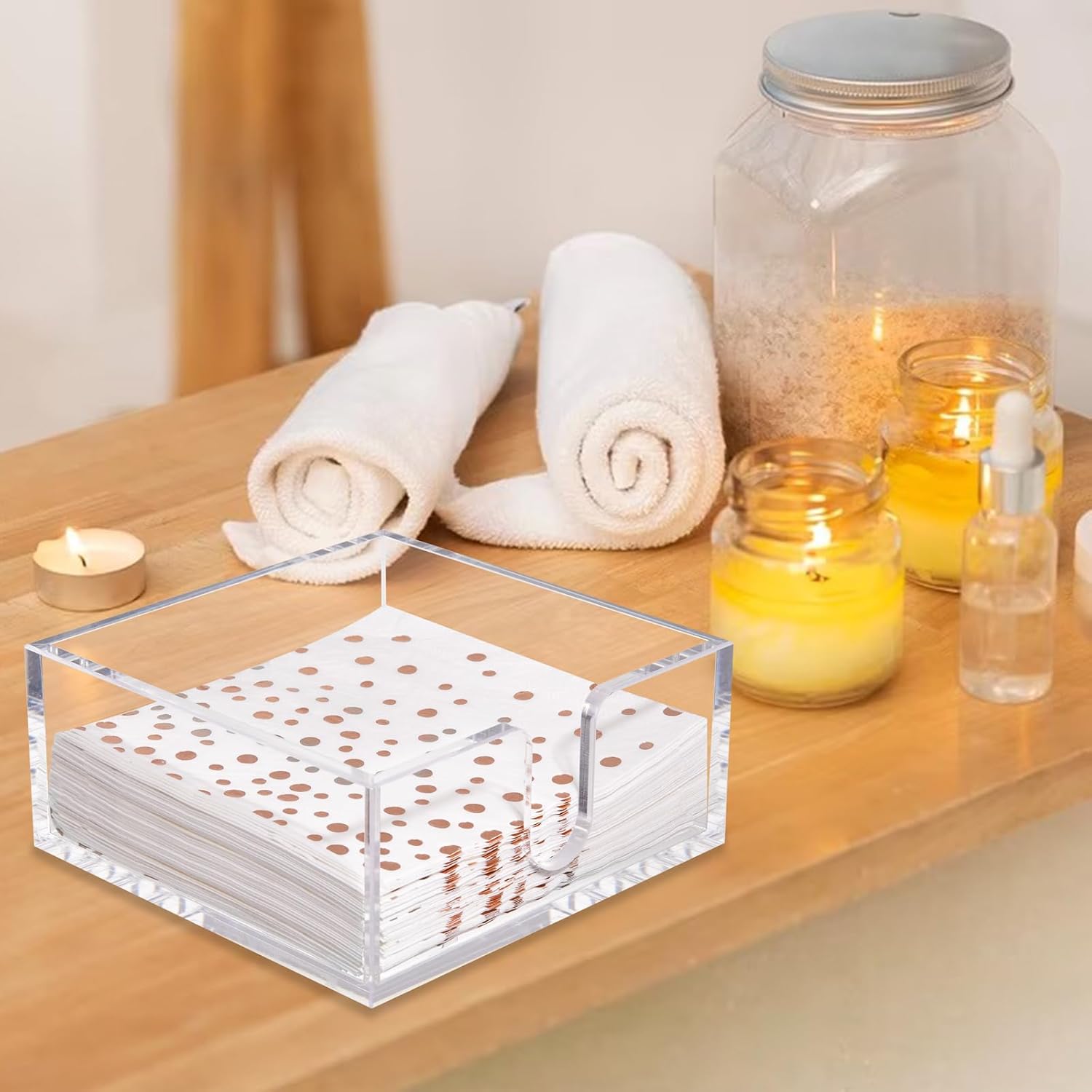 - Widely Use: Designed to fit various sizes of napkins, this acrylic napkin holder is versatile and functional. Lucite napkin holder can accommodate standard cocktail napkins as well as guest towel napkins, making square napkin holder suitable for any occasion such as New Year party. The easy filling and removal of napkins ensure convenience and efficiency.