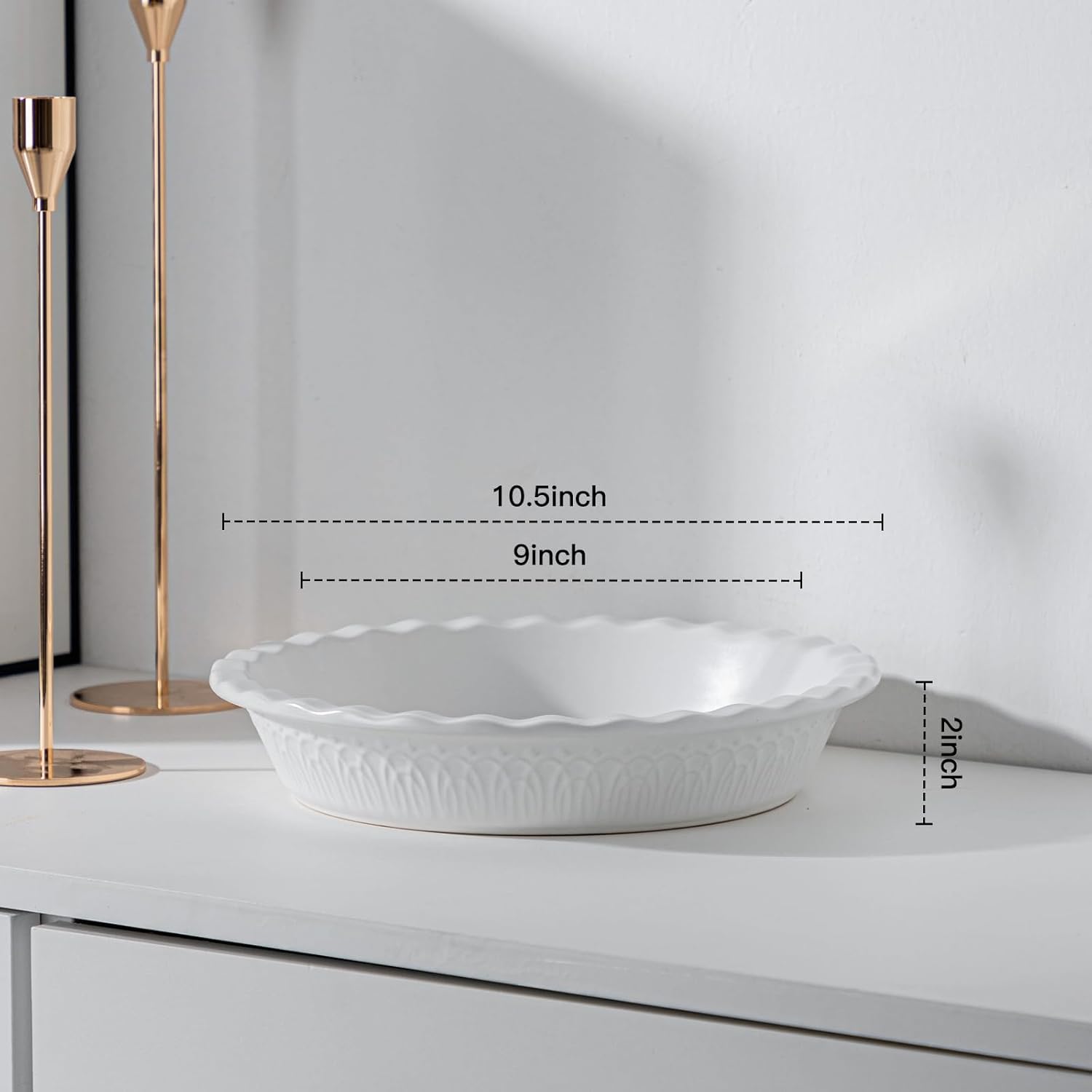 - Microwave, Oven & Dishwasher Safe: Smooth glazed surface makes this pie pan for baking 9 inch easy to clean. Just put it directly into the dishwasher and it comes out spotless.