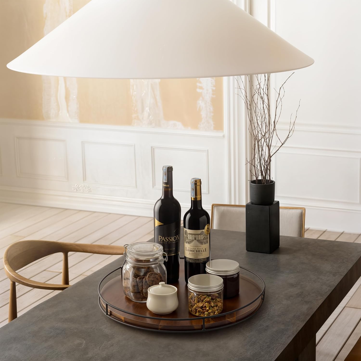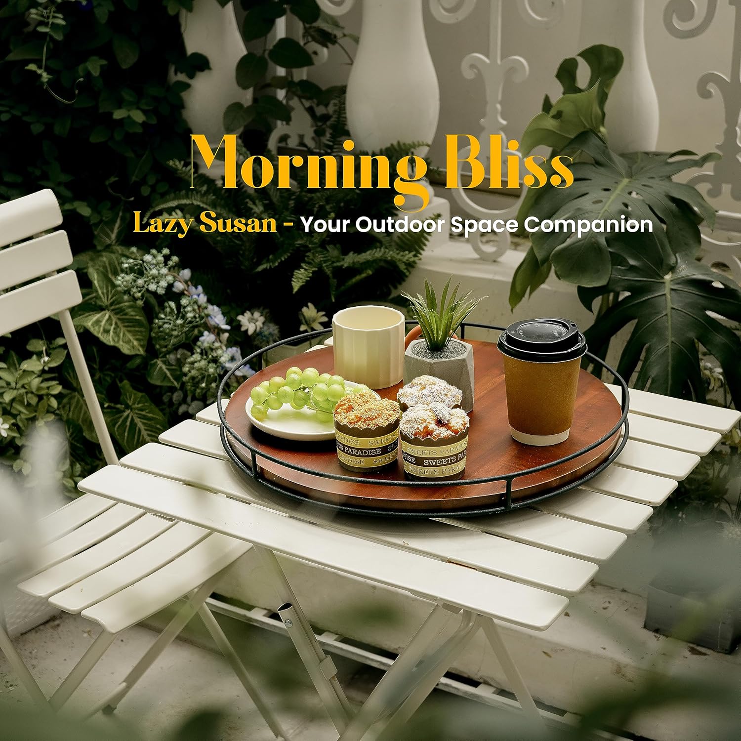 - Versatile and Spacious: With its expansive 18-inch diameter, this lazy Susan offers abundant storage space. It easily accommodates a wide range of items, making it a versatile addition to your kitchen, dining area, or living room. Whether it's organizing spices, displaying decorative pieces, setting up a delightful afternoon tea or coffee spread, or arranging an appealing charcuterie board, this lazy Susan has you covered.