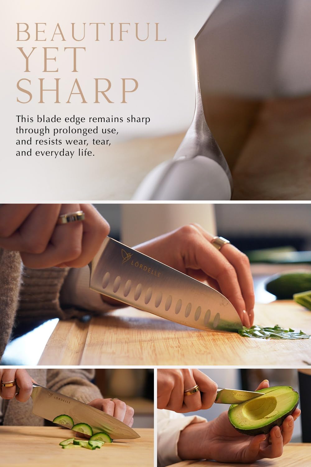 - Stunning Design Meets Comfort & Function: Discover the perfect blend of style and utility with Lordelle's "Right Size" concept. Smaller, ergonomically designed knives and a compact block that enhance both your cooking and kitchen décor, without taking up too much space.