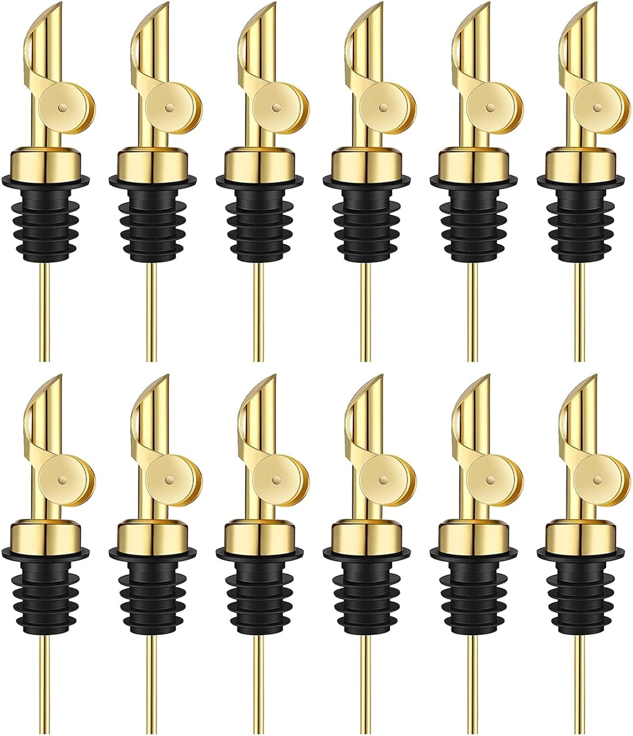 Pafusen 12 Pack Weighted Liquor Pour Spout, Auto Flip Olive Oil Dispenser Spout, Pour Spout for Liquor Bottles, Olive Oil Spout, Bottle Pourers for Alcohol Wine Syrup Home Bar Accessories Gold