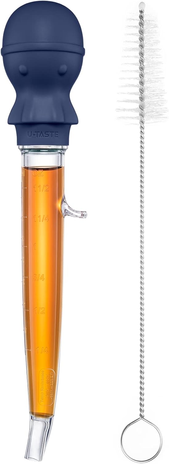U-Taste 1.5oz Angled Turkey Baster - 228.2ºF Heat Resistant Food Grade Tritan and Silicone Large Octopus Bulb Baster Set with Cleaning Brush for Cooking Basting Meat Poultry Chicken (Midnight Blue)