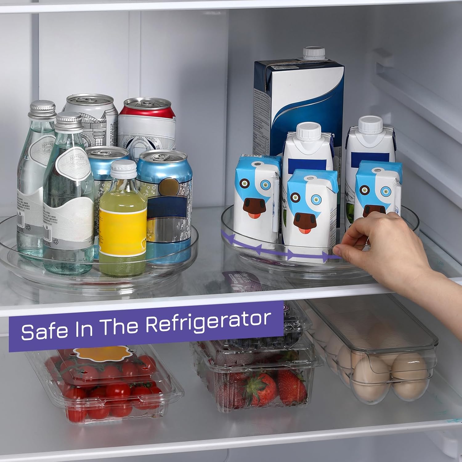 - [ Please Note ] - The clear lazy susans are large enough for coke of 8 cans(refer to the 2rd image). Please read the lazy susan dimensions and measure your tabletop or closet space before ordering in case it doesn't fit.