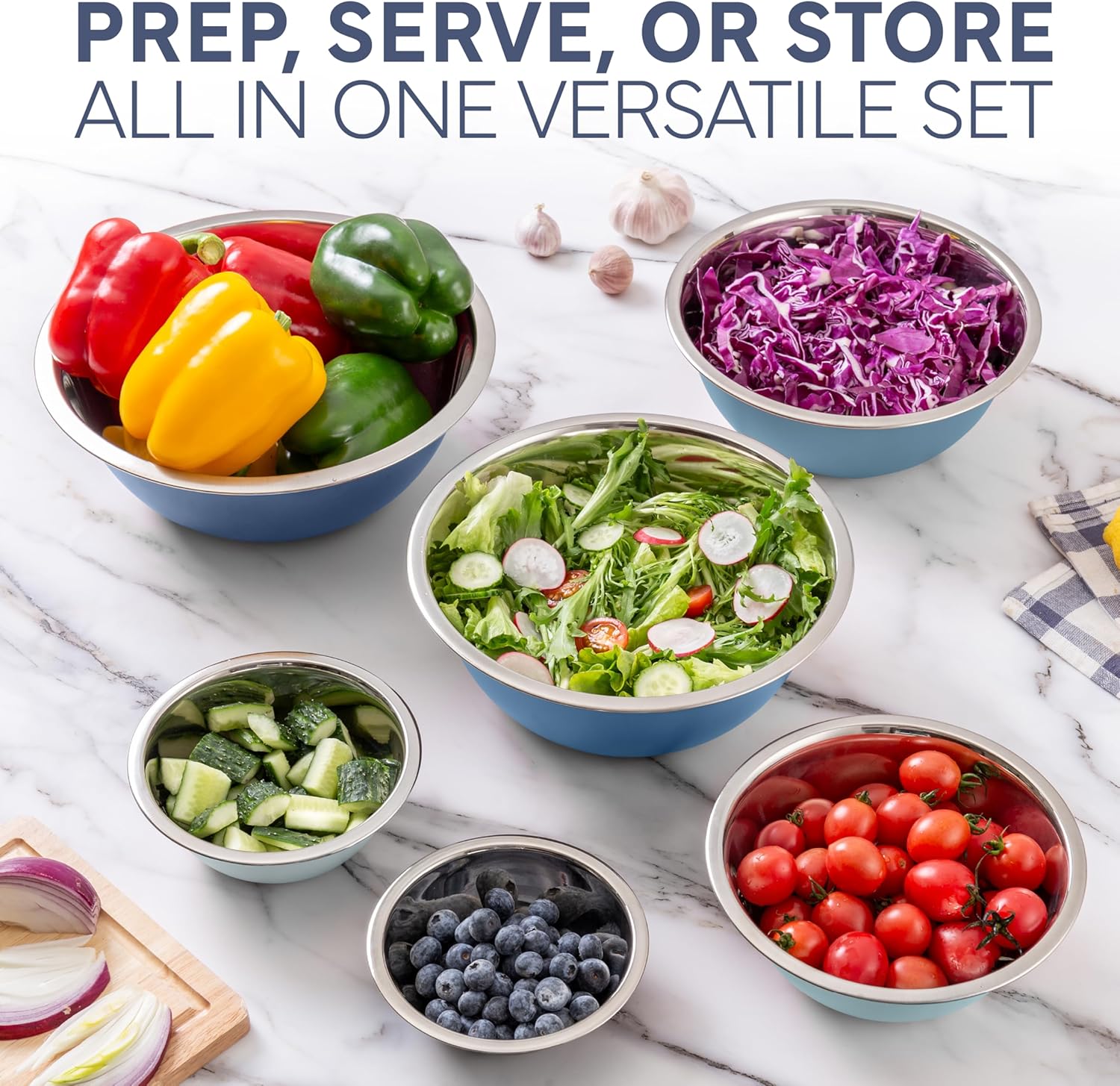 COOK WITH COLOR Stainless Steel Mixing Bowls Set - Nesting Bowls, 6 Pieces, Blue