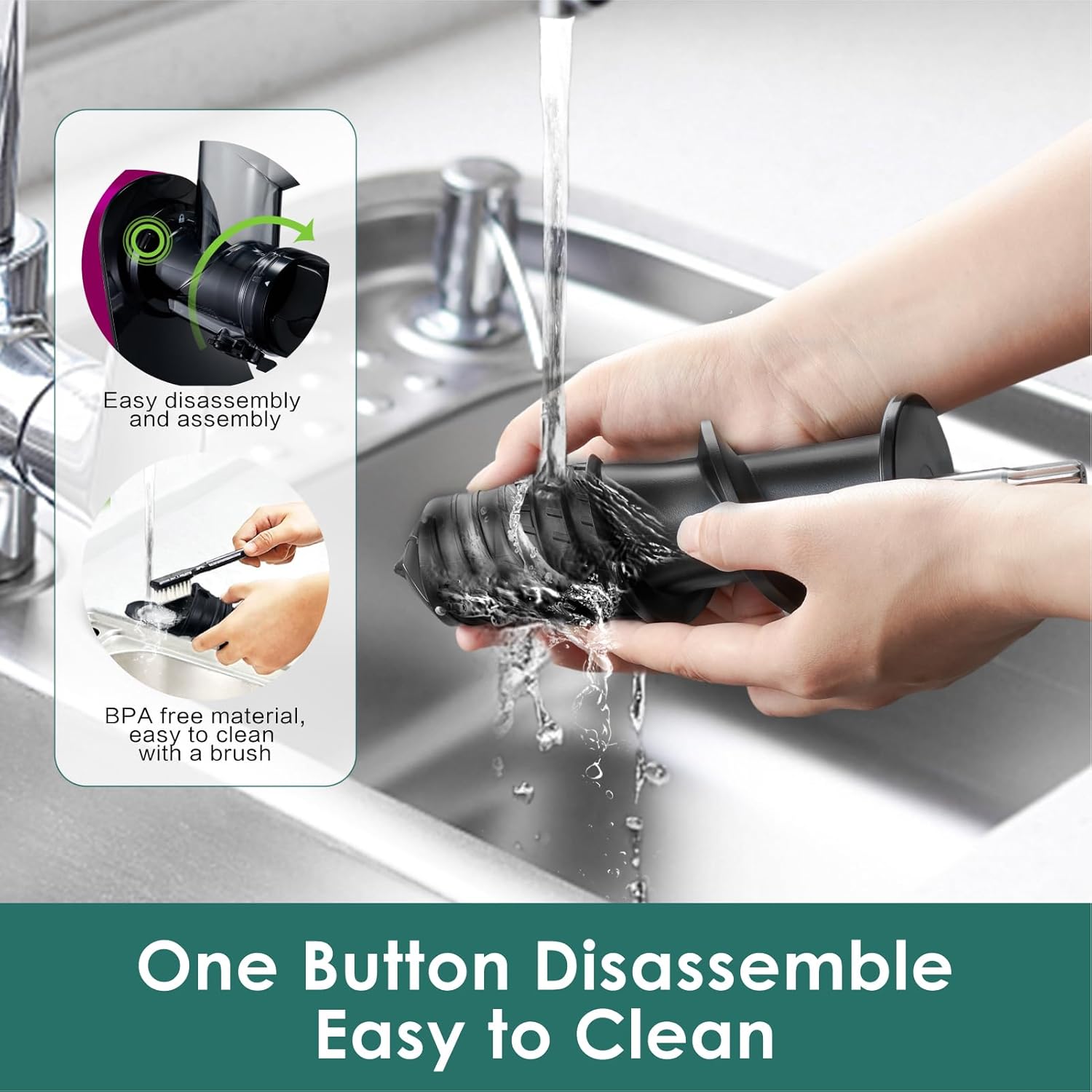 - 【Simple Assembly & Cleaning】Fretta Masticating juicer is designed for effortless use. With just a single touch of a button, the juicing body easily detaches, enabling convenient cleaning under running water. For your convenience, we have also included a specialized brush to effortlessly remove any small pulp from the juicing screen. Enjoy the convenience of quick assembly and hassle-free cleaning with our user-friendly juicer.